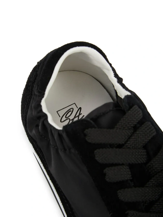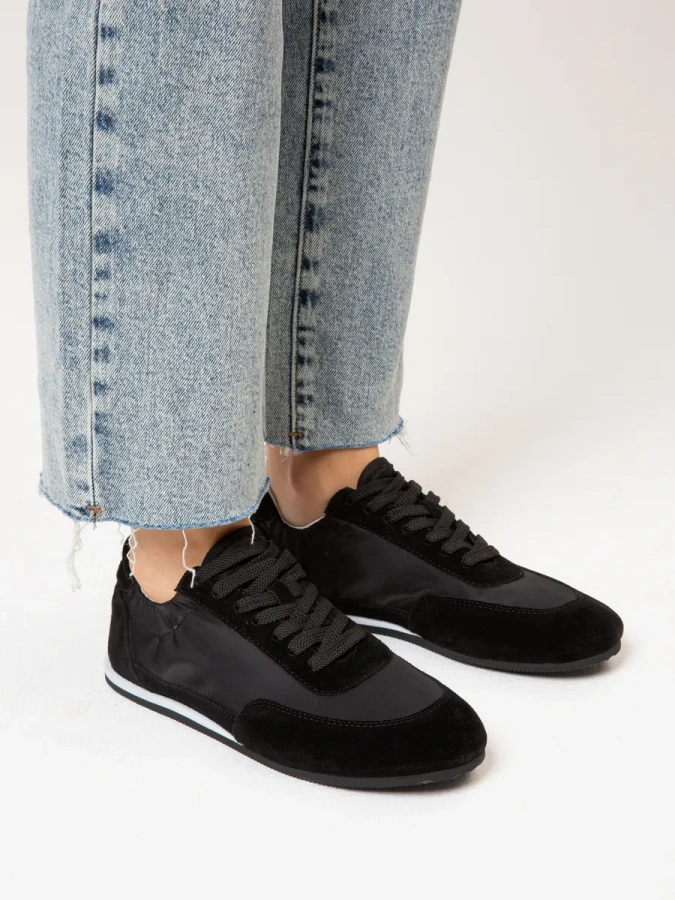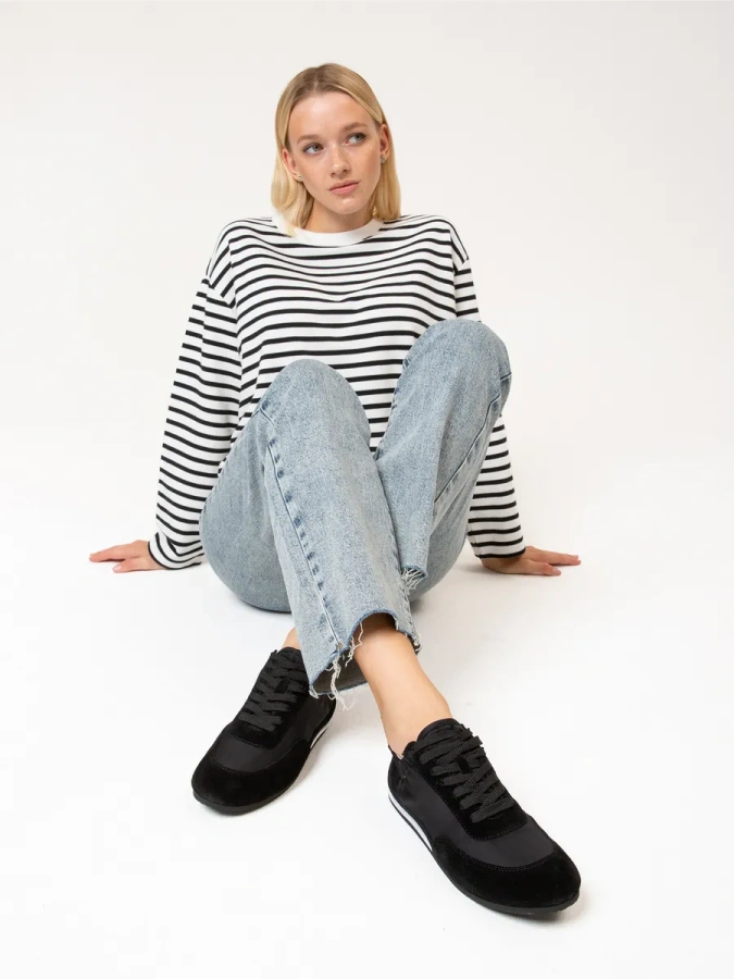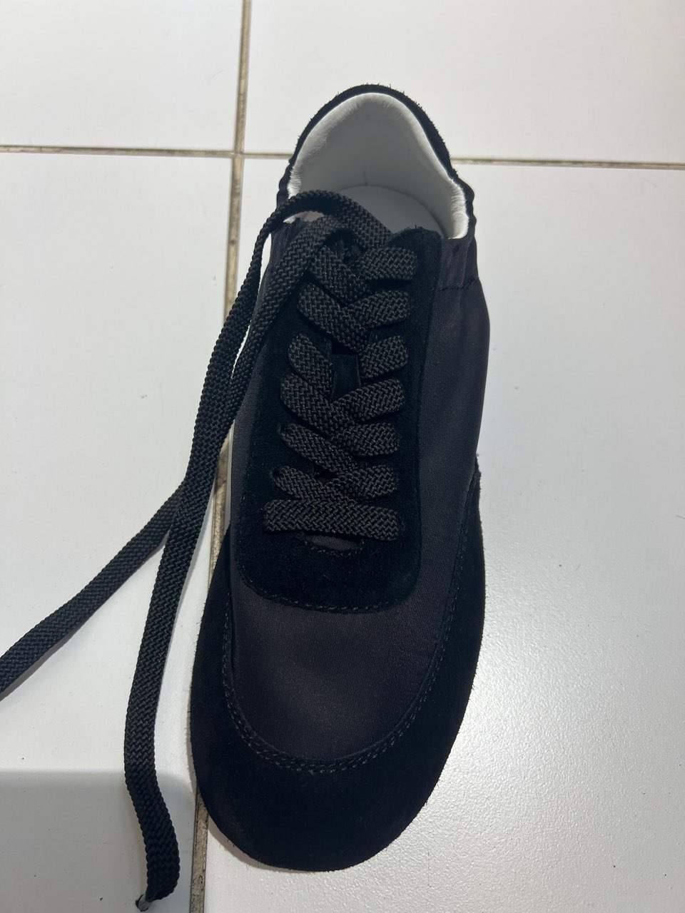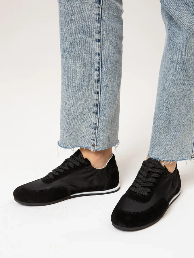 Верх кроссовок выполнен из замши и текстиля, что придаёт им особый шарм и обеспечивает комфорт в носке. Подкладка и стелька из 100% натуральной кожи гарантируют удобство и долговечность. Резиновая подошва обеспечивает отличное сцепление с поверхностью и износостойкость. Шнуровка позволяет регулировать плотность посадки, а минималистичный дизайн без каблука делает эти кроссовки универсальным решением для любого образа в стиле sport. Высота подошвы всего 0,7 см, а высота каблука — 1 см, что обеспечивает удобство и устойчивость при ходьбе.