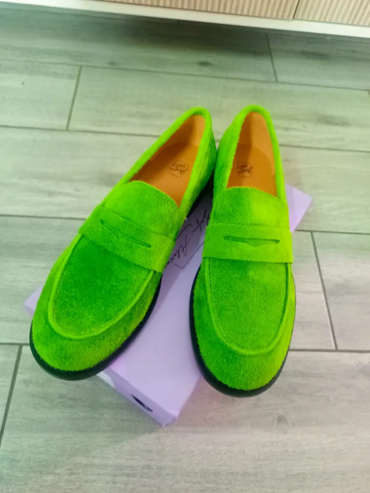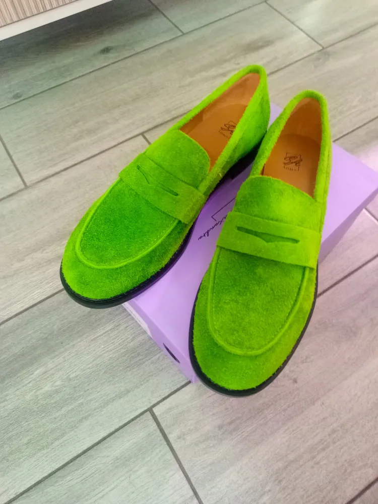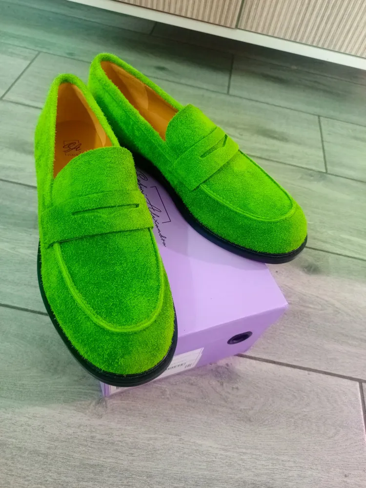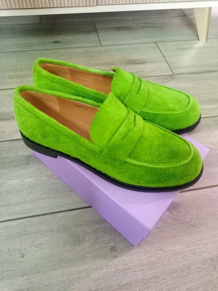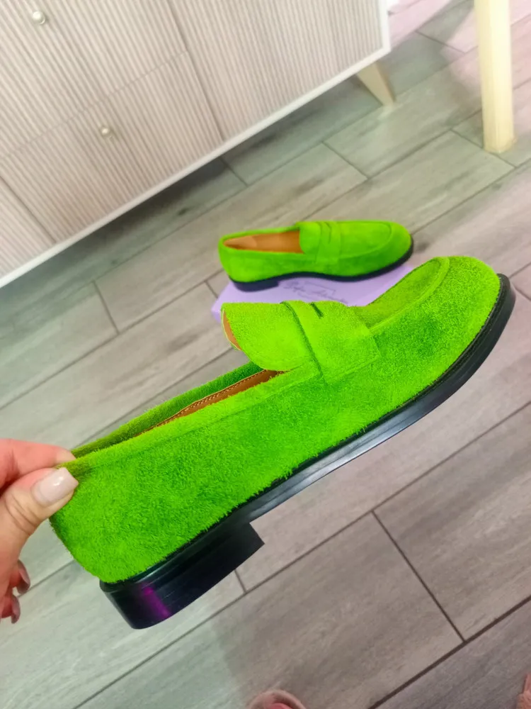 Изготовленные из 100% натуральной кожи (замши), они станут отличным дополнением к вашему образу в стиле casual. Зелёный цвет лоферов добавит яркости и свежести в ваш весенний гардероб. Удобная подошва из полиуретана и небольшой каблук высотой 2,5 см обеспечивают комфорт при ходьбе. Высота подошвы/платформы составляет 1 см, что придаёт обуви лёгкость и изящество.