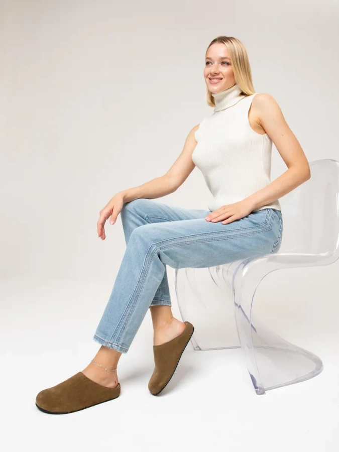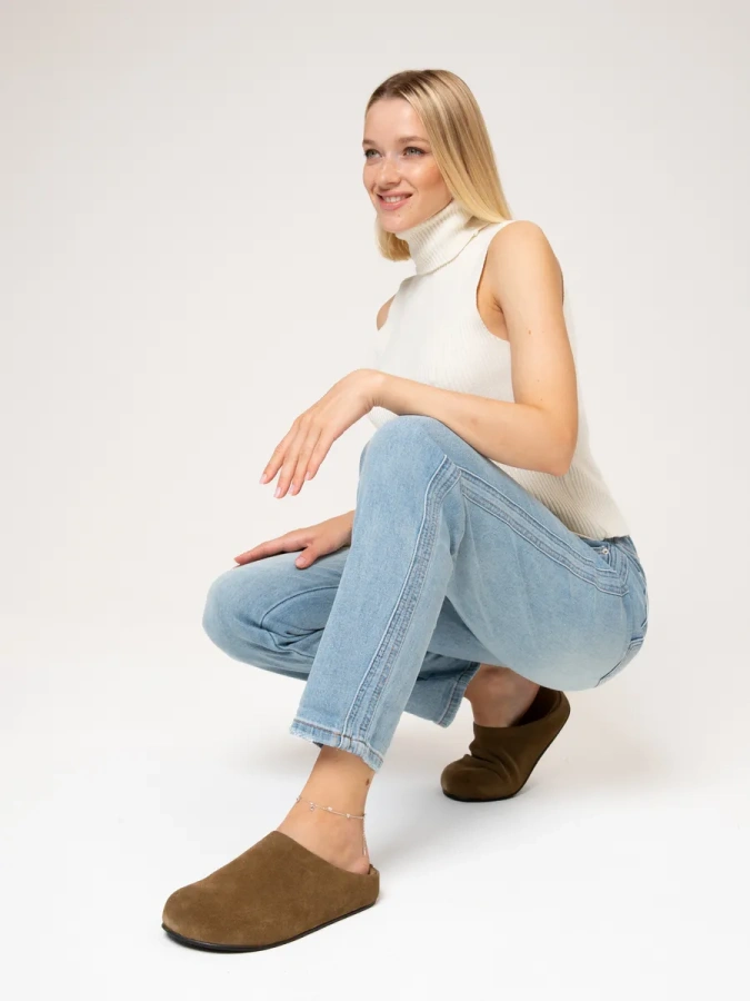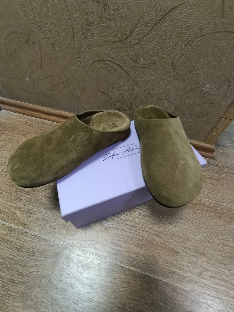 Натуральная замша и кожа обеспечивают комфорт и долговечность обуви. Резиновая подошва с высотой платформы 1 см и высотой каблука 2 см (хотя модель и обозначена как «без каблука») придаёт пантолетам изящный вид. Выполненные в стильном коричневом цвете, они станут прекрасным дополнением к вашему образу в стиле casual. Лёгкие и удобные, эти пантолеты станут незаменимой частью вашего летнего гардероба, позволяя чувствовать себя уверенно и стильно в любой ситуации.