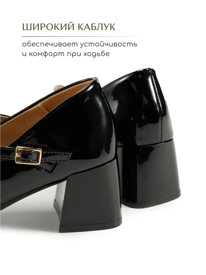 Изготовленные из 100% натуральной лаковой кожи, они обеспечивают не только роскошный внешний вид, но и комфорт благодаря качественной подкладке и стельке из натуральной кожи. Высота подошвы всего 0,7 см, а изящный трапециевидный каблук высотой 7 см придаёт модели утончённый вид. Практичность и удобство дополняет надёжная застёжка — пряжка с ремешком. Выберите туфли мери джейн от eObuv и добавьте в свой образ нотку элегантности и уверенности.