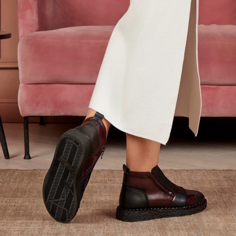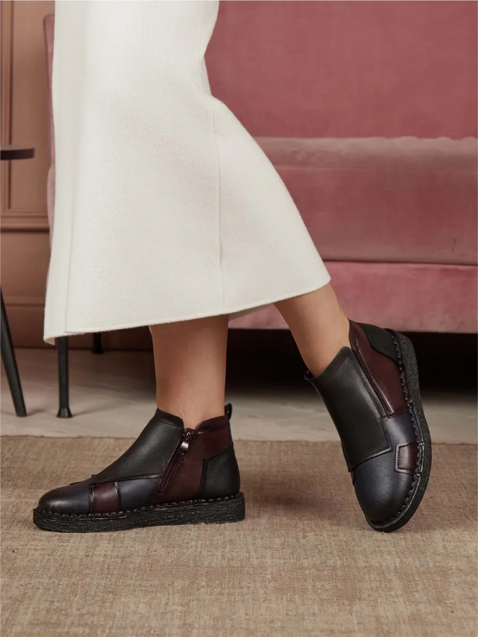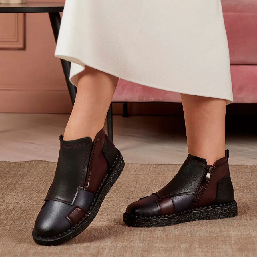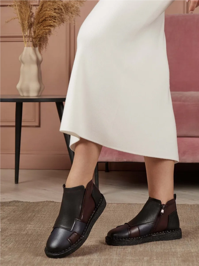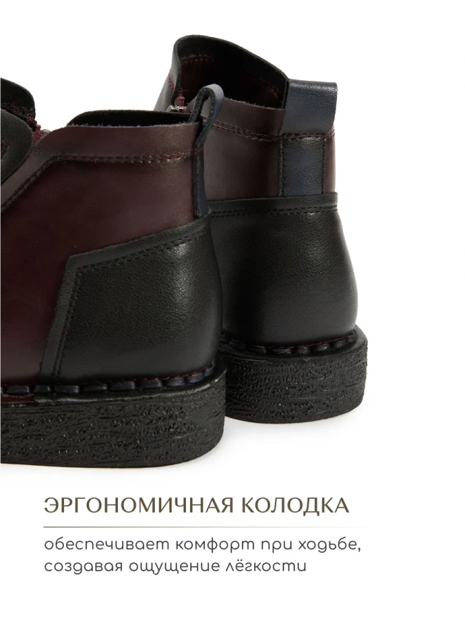 Модель изготовлена из 100% натуральной кожи, что гарантирует её прочность и долговечность. Дизайн в стиле casual делает эти ботинки идеальным выбором для повседневной носки. Комфортная байковая подкладка и стелька обеспечивают тепло и уют в осенние дни. Высота подошвы — 2 см, высота каблука — 3 см. Удобная молния с внутренней стороны модели облегчает процесс обувания. Подходят для сезона осень-зима.