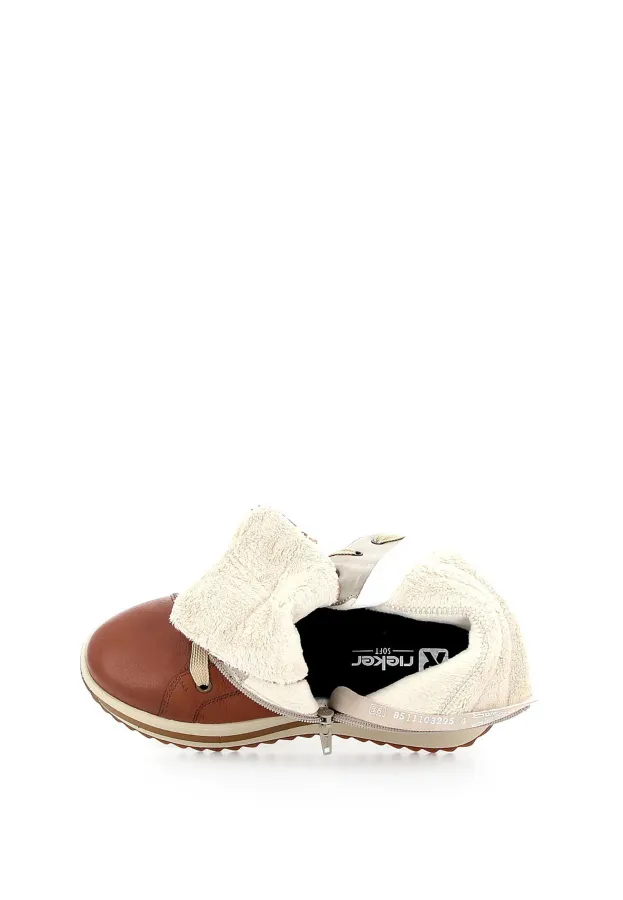Женские ботинки RIEKER бежевого цвета — отличный выбор для осени. Натуральная кожа верха обеспечивает долговечность и комфорт. Тёплая подкладка из ворсина и текстильная стелька создают уют и поддерживают тепло. ЭВА подошва гарантирует лёгкость и амортизацию при ходьбе. Стиль casual делает эти ботинки идеальными для повседневного образа. Удобная шнуровка в сочетании с молнией обеспечивает надёжную фиксацию.