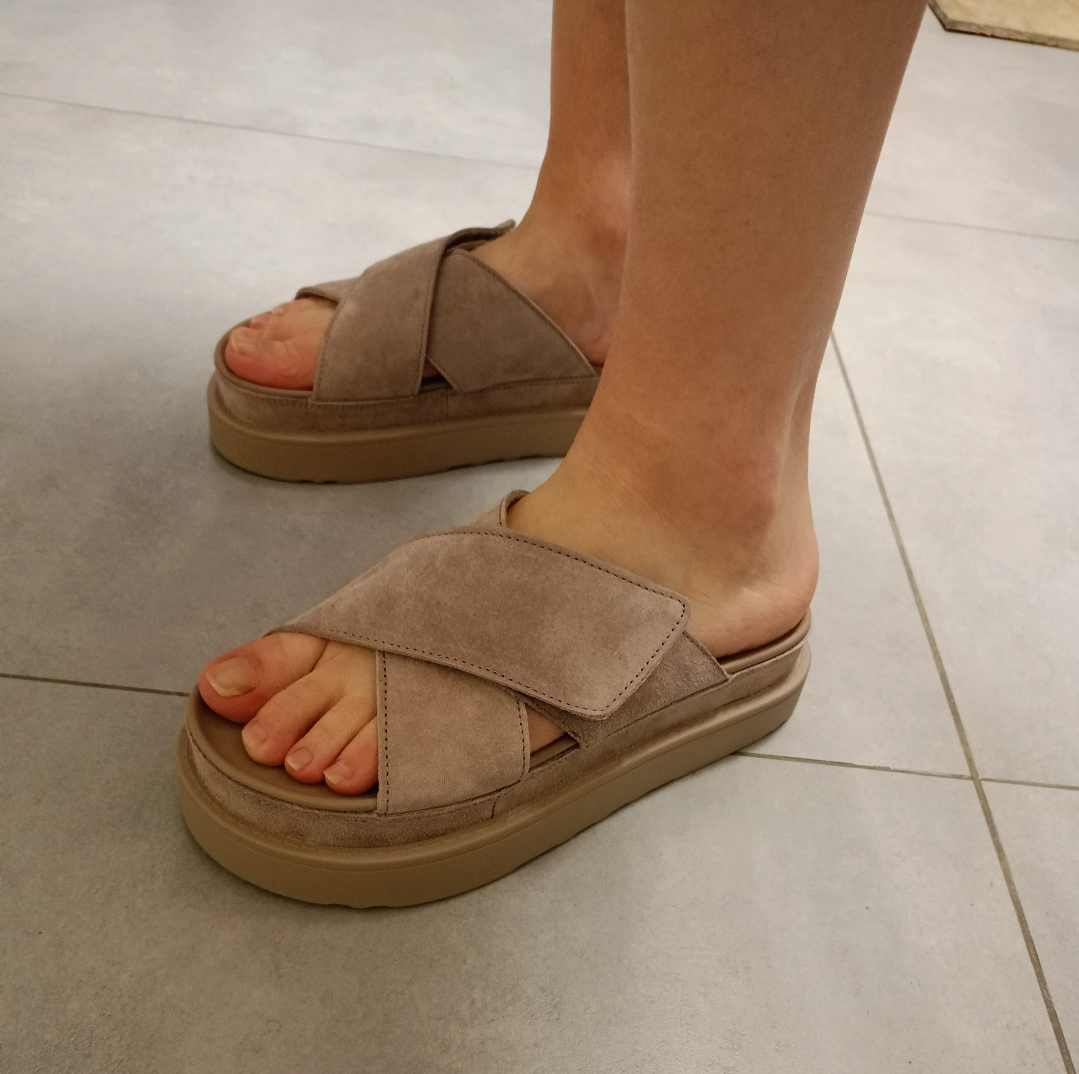 Выполнены из 100% натуральной кожи (замши) бежевого цвета, что придаёт им изысканность и элегантность. Удобная подошва высотой 4 см и платформа высотой 4,5 см обеспечивают комфорт при ходьбе. Сабо Donna Daniella в стиле casual станут отличным дополнением к вашему летнему гардеробу. Они идеально подойдут для прогулок и повседневной носки. Липучка в качестве застёжки обеспечивает лёгкость и удобство при использовании.