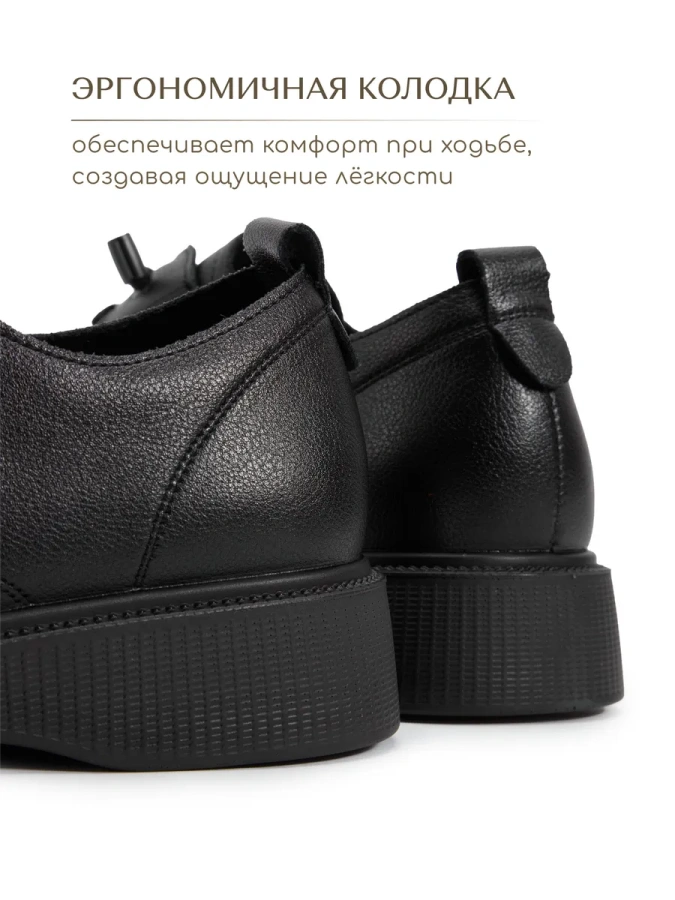 Изготовленные из 100% натуральной кожи, они обеспечивают комфорт и долговечность. Текстильная подкладка и стелька из натуральной кожи гарантируют приятные ощущения при носке. Полиуретановая подошва обеспечивает хорошую амортизацию и устойчивость. В туфлях от eObuv вы будете выглядеть стильно и уверенно в любой ситуации. Подходят для повседневного образа в стиле casual.