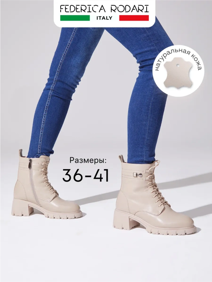 Погрузитесь в мир итальянского стиля с ботинками FEDERICA RODARI – настоящим произведением искусства из Италии. Изготовленные из 100% натуральной кожи, бежевые ботинки идеально подходят для зимнего сезона. Они не только сохранят ноги в тепле благодаря шерстяной подкладке и стельке, но и придают стиля Вашему повседневному образу. Модель имеет полноту G(7) и подойдет на стандартную стопу и небольшой +/-.