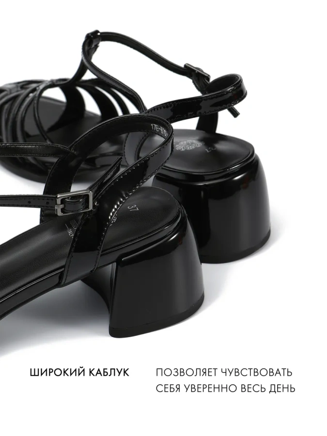 Босоножки выполнены из 100% натуральной лаковой кожи, что гарантирует их долговечность и привлекательный внешний вид. Натуральная кожаная стелька и подкладка обеспечивают комфорт на протяжении всего дня, а трапециевидный каблук высотой 6 см добавляет изысканности и уверенности в каждом шаге. Оснащены удобной пряжкой , которая надежно фиксируют стопу, обеспечивая комфорт и безопасность.Эти босоножки станут отличным дополнением к вашему летнему гардеробу.