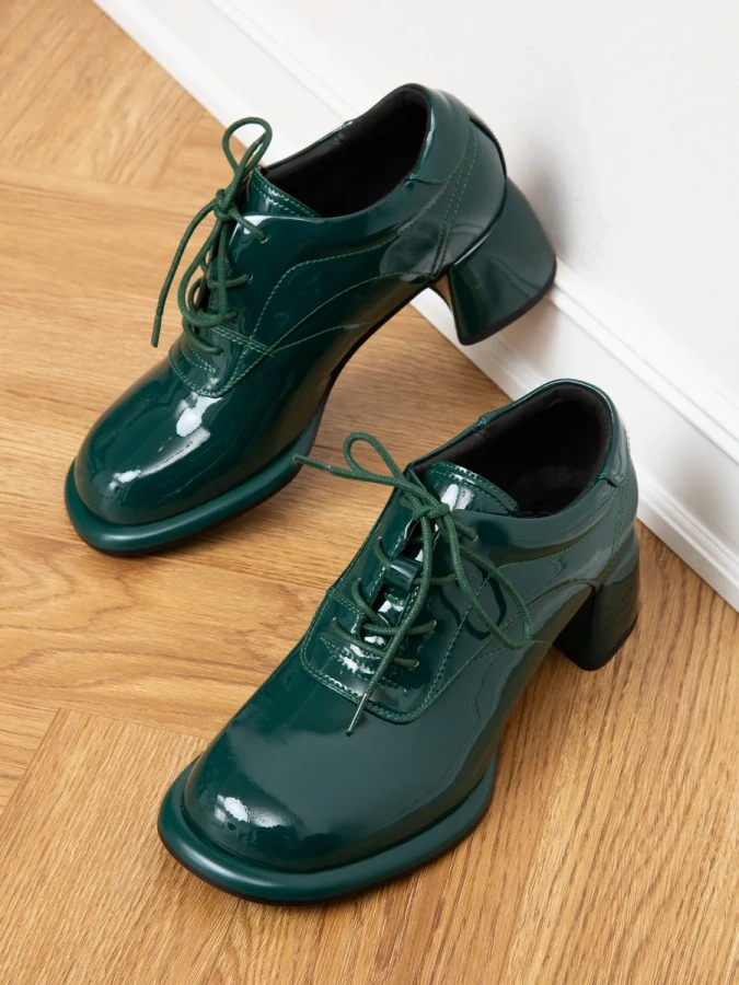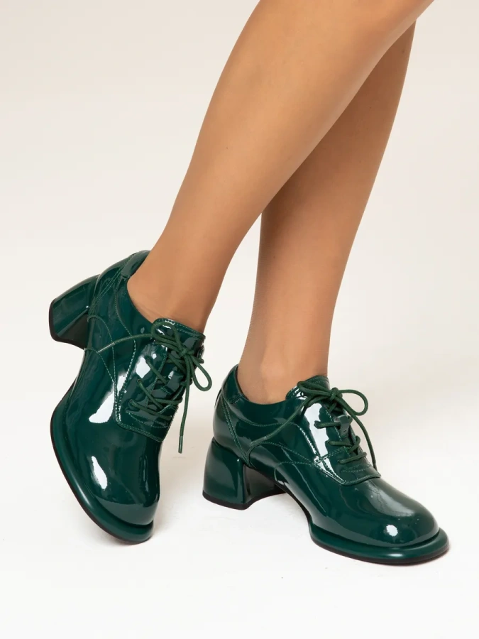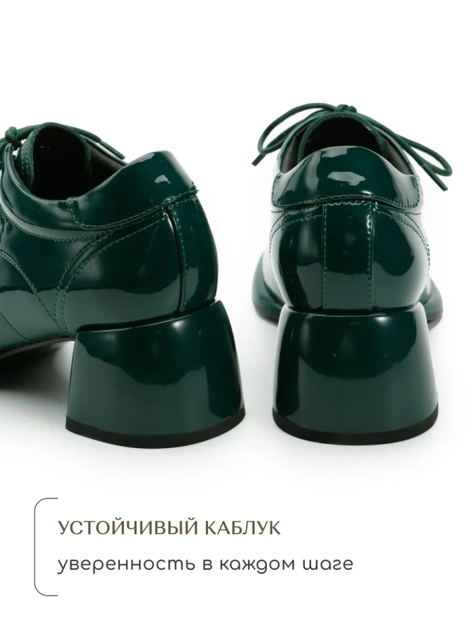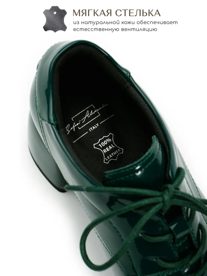 Изготовленные из 100% натуральной лаковой кожи, они отличаются высоким качеством и долговечностью. Модель в зелёном цвете станет ярким акцентом в вашем весеннем гардеробе, добавляя образу дерзости и стиля. Удобный трапециевидный каблук высотой 5,5 см и платформа в 1 см обеспечивают комфорт при ходьбе, а шнуровка позволяет регулировать посадку по своему усмотрению. Эти туфли в стиле casual станут отличным дополнением к любому повседневному наряду, подчёркивая ваш индивидуальный вкус.