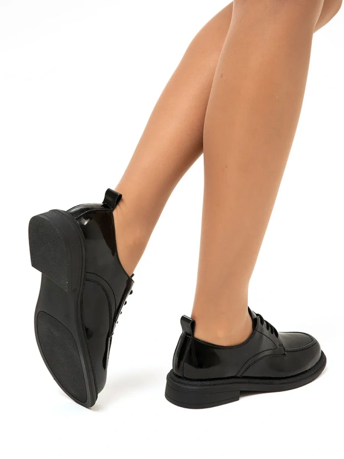 Туфли SOFIA-ALEXANDRA — это воплощение элегантности и стиля для осеннего сезона. Изготовленные в Италии, они отличаются высоким качеством и вниманием к деталям. Лаковая натуральная кожа верха, подкладки и стельки обеспечивает не только роскошный внешний вид, но и комфорт при носке. Полимерная подошва высотой 1,5 см и устойчивый каблук высотой 3,5 см (форма каблука — «кирпич») делают эти туфли удобными и практичными для повседневного использования в стиле casual. Шнуровка добавляет модели практичности и позволяет регулировать посадку на ноге. Чёрные туфли SOFIA-ALEXANDRA станут отличным дополнением к вашему гардеробу и помогут создать множество стильных образов.
