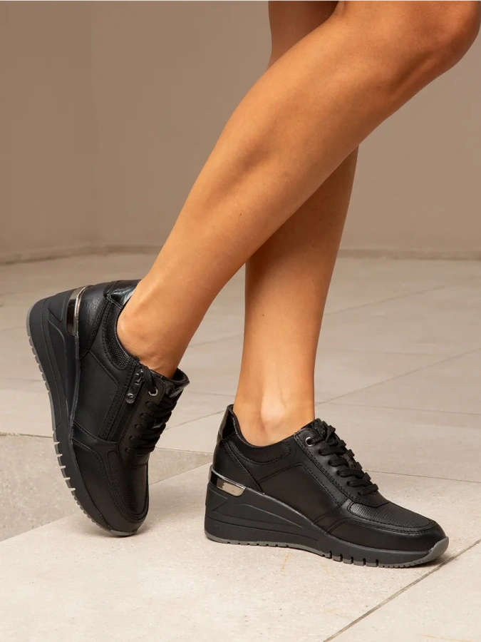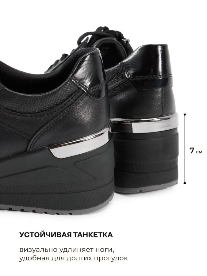 Модель изготовлена из 100% натуральной кожи, что придаёт ей изысканный вид и обеспечивает долговечность. Высота подошвы всего 1 см, а высота каблука — 7 см, что обеспечивает комфорт и удобство при ходьбе. Шнуровка и молния позволяют регулировать посадку по своему вкусу. Текстиль в качестве подкладки и натуральная кожа на стельке гарантируют приятные ощущения при носке. Эти осенние кроссовки станут отличным дополнением к вашему гардеробу.