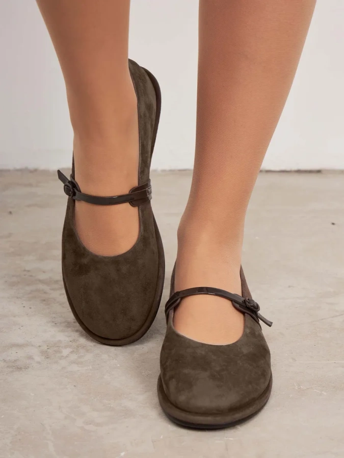Модель изготовлена из 100% натуральной кожи (замши), что обеспечивает комфорт и долговечность. Серый цвет делает туфли универсальными для создания повседневных образов. Низкий устойчивый каблук и удобная подошва высотой 1 см делают эти туфли идеальными для осеннего сезона. Тип застёжки — пряжка с ремешком, что обеспечивает надёжную фиксацию на ноге. В этих туфлях вы будете чувствовать себя уверенно и стильно.