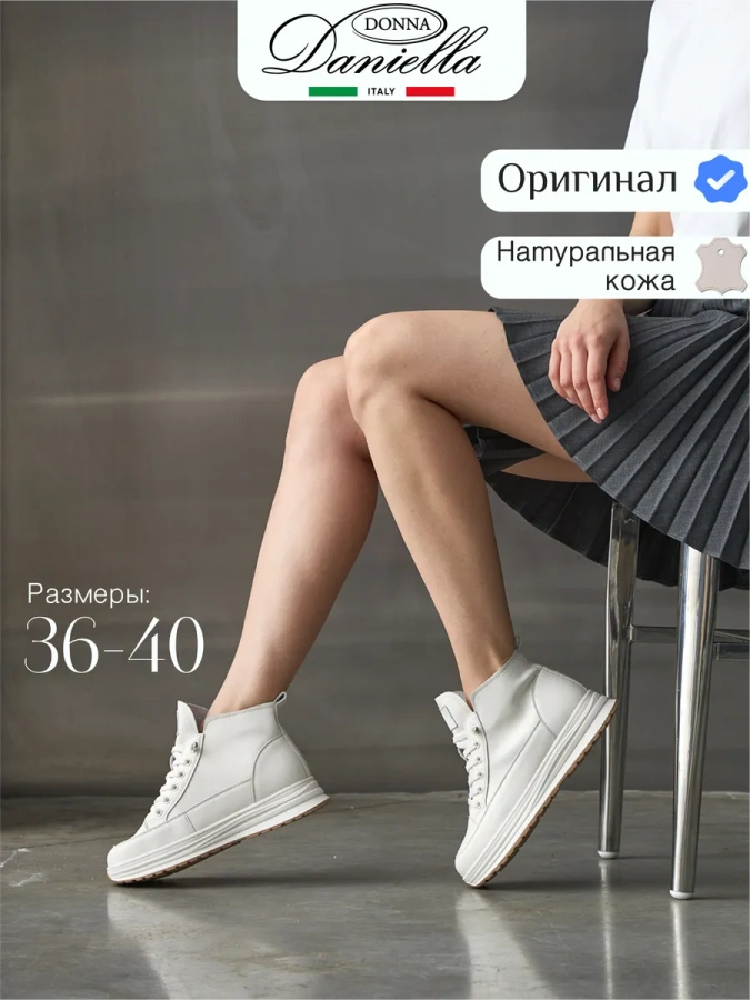 Ботинки Donna Daniella — это идеальный выбор для любителей стиля sport-chic. Изготовленные в Италии из 100% натуральной кожи, они отличаются высоким качеством и долговечностью. Белый цвет ботинок придаёт образу свежесть и лёгкость, а резиновая подошва высотой 2 см обеспечивает удобство и комфорт при ходьбе. Высота каблука 4 см придаёт ботинкам элегантный вид, делая их подходящими не только для повседневной носки, но и для создания интересных образов в стиле sport-chic. Благодаря резинке с фиксатором, ботинки обеспечивают удобство и лёгкость при надевании. Натуральная кожа верха и стельки гарантирует комфорт и долговечность обуви.