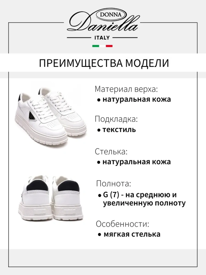 Кеды Donna Daniella — идеальный выбор для любителей стиля casual. Выполненные в классическом белом цвете, они станут отличным дополнением к вашему гардеробу. Изготовленные из 100% натуральной кожи, эти кеды не только красивы, но и долговечны. Текстильная подкладка и стелька из натуральной кожи обеспечивают комфорт при носке. Резиновая подошва высотой 3 см придаёт обуви лёгкость и устойчивость. Отсутствие каблука делает эти кеды удобными для повседневной носки. Шнуровка позволяет регулировать посадку и обеспечивает надёжную фиксацию стопы. С кедами Donna Daniella вы будете выглядеть модно и чувствовать себя комфортно каждый день.