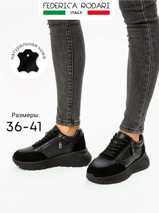 Женские кроссовки из натуральной кожи на платформе от итальянского бренда Federica Rodari.
