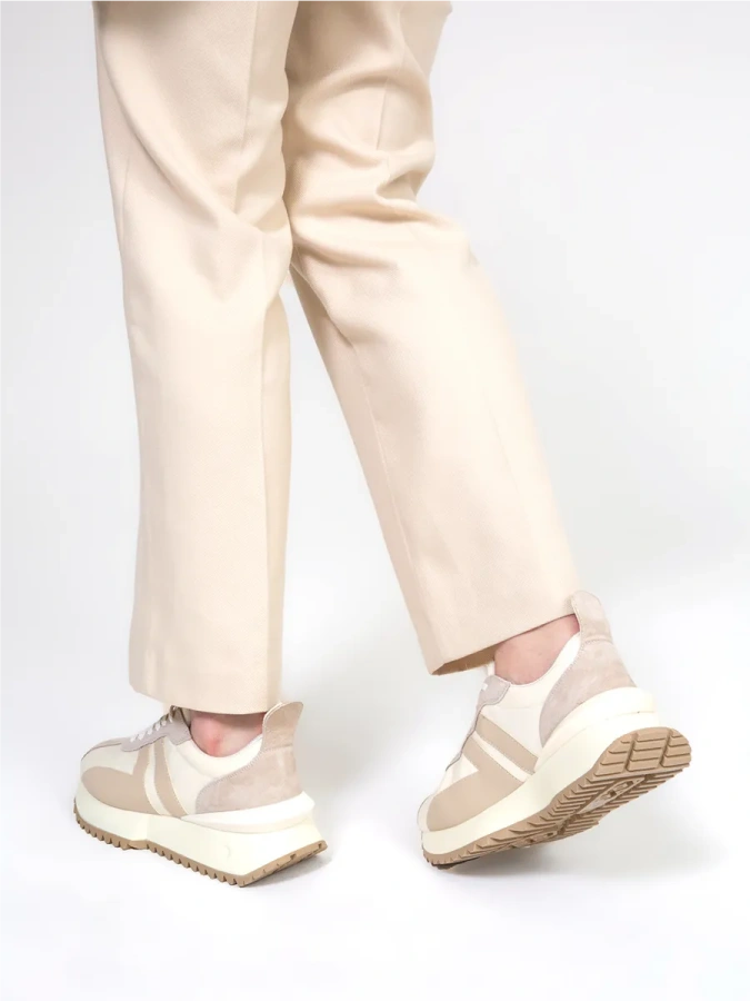 FEDERICA RODARI приглашает Вас обнаружить элегантность и комфорт в женских кроссовках, разработанных в самой Италии. Бежевый цвет этой модели из коллекции Весна-Лето 2024 делает их универсальными на все времена года, а стиль Sport придает Вашему образу динамичный и современный вид.