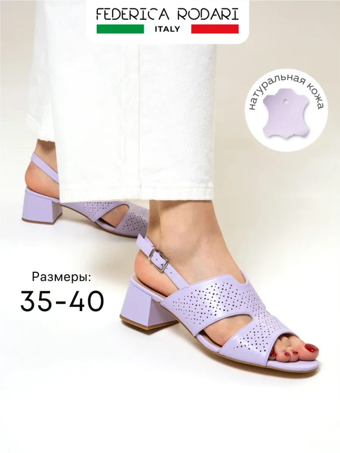 Federica Rodari — премиальная женская обувь от итальянских дизайнеров. Модели из натуральной телячьей кожи высшего сорта отличаются прочностью и устойчивостью к внешним воздействиям. Гладкая и мягкая кожа не образует трещин, придаёт обуви благородный вид. Подологи адаптировали колодки под форму женской стопы, что обеспечивает удобство при ходьбе. Летние босоножки с открытым круглым носом и перфорацией, удобным ремешком и застёжкой-пряжкой станут отличным выбором для офиса, деловых встреч, школы, выпускного, вечеринки или свадьбы. Кожаные стельки в туфлях на широком каблуке добавляют дополнительный комфорт. Женская летняя обувь Federica Rodari подчеркнёт индивидуальность и создаст неповторимый стиль.
