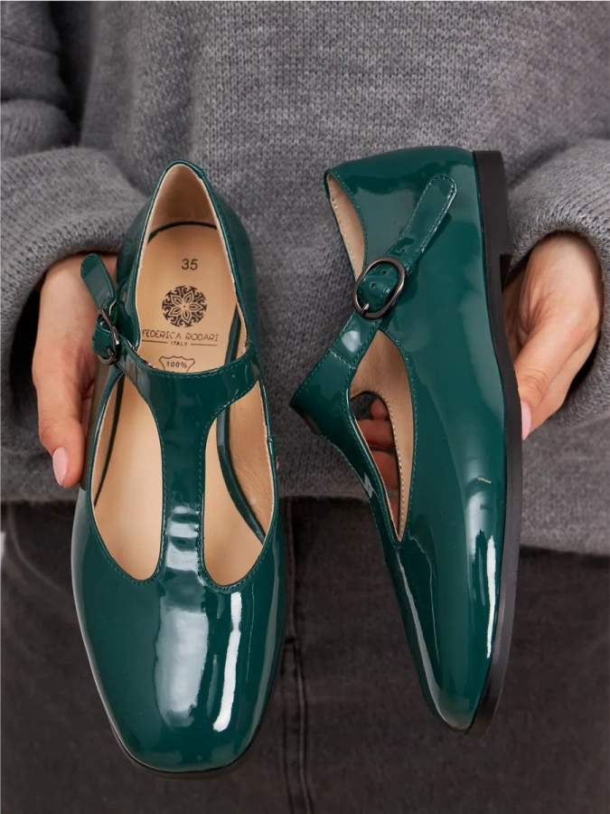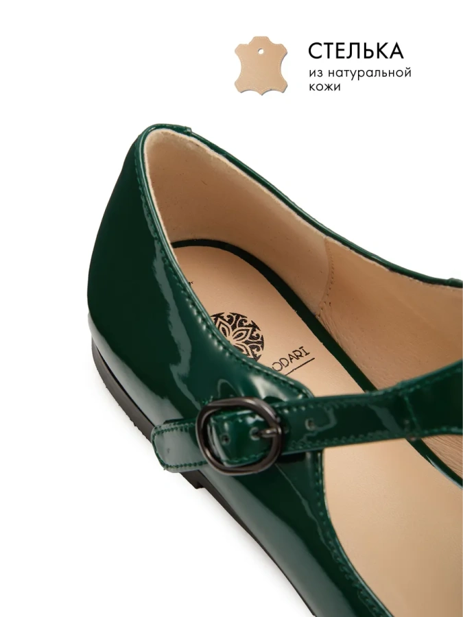 Модель изготовлена из 100% натуральной кожи, что придаёт ей изысканный и элегантный вид. Лаковый зелёный цвет добавит яркости в осенние будни и станет отличным дополнением к вашему повседневному образу. Удобная подошва высотой 0,5 см и устойчивый венский каблук высотой 1 см обеспечивают комфорт и уверенность при ходьбе. Застёжка с пряжкой и ремешком гарантирует надёжную фиксацию обуви на ноге. Эти туфли идеально впишутся в ваш casual-гардероб и станут любимой парой на каждый день.