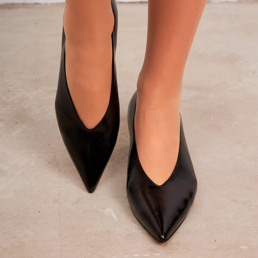 Модель изготовлена из 100% натуральной кожи, что обеспечивает её долговечность и элегантный внешний вид. Чёрные туфли-лодочки это идеальный выбор для деловых встреч и других официальных мероприятий. Устойчивый каблук-рюмочка высотой 5 см обеспечивает комфорт и уверенность при ходьбе. Удобная модель без застёжек прекрасно сидит на ноге.