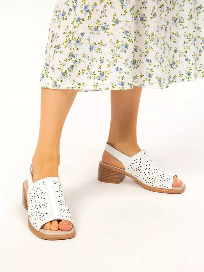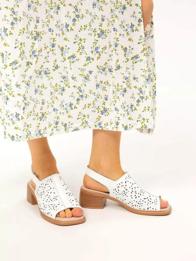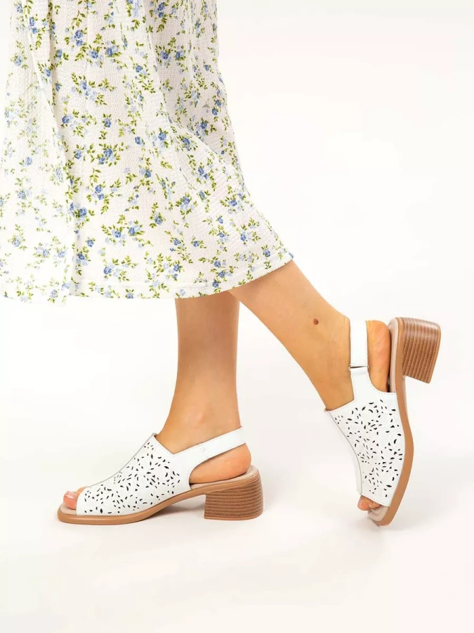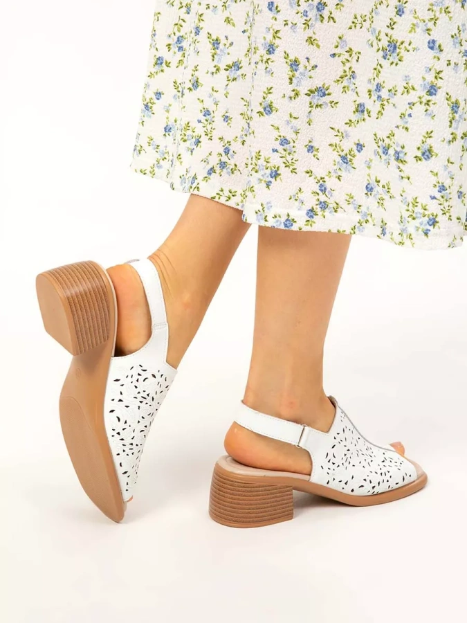 Женские босоножки с перфорацией на широком каблуке из натуральной кожи от европейского бренда eObuv.