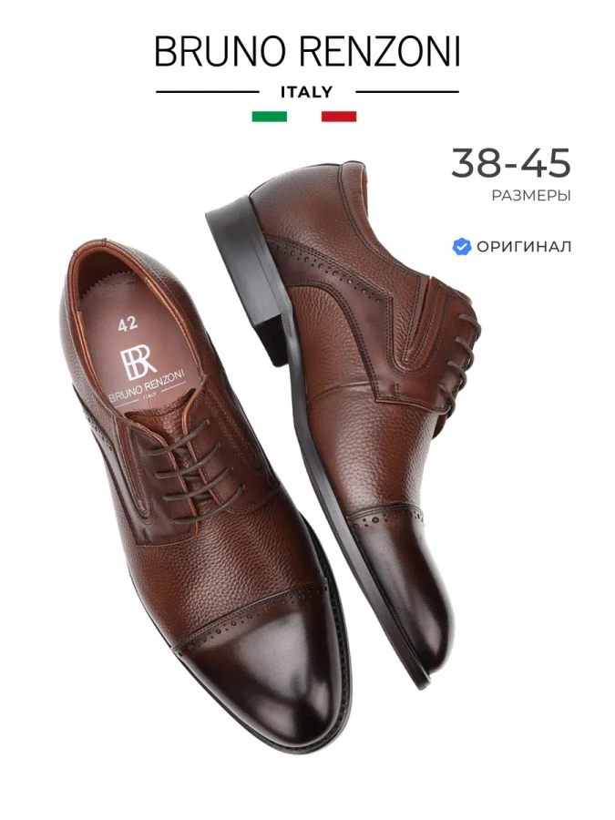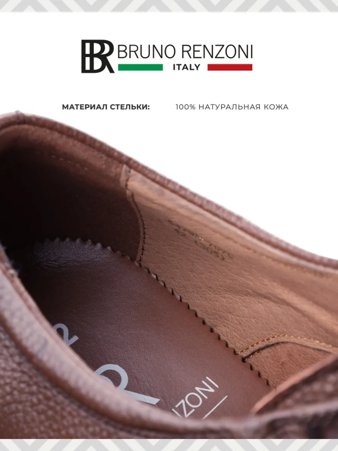 Мужские туфли дерби из натуральной кожи от итальянского бренда Bruno Renzoni. Длина стельки в см.: 38 - 26.5/ 39 - 27/ 40 - 27,5/ 41 - 28/ 42 - 28.5/ 43 - 29/ 44 - 29.5/ 45 - 30. Подкладка и несъемная стелька также выполнены из натуральной кожи, что повышает прочность и придает максимальный комфорт. Дизайнерское решение в виде сочетания зернистой и гладкой кожи в разных оттенках - изюминка модели. Эластичные вставки облегчают обувание и способствуют комфортной посадке, а наличие шнуровки позволяет регулировать подъем. Удобная колодка адаптирована под мужскую стопу и длительную носку. Подходят на стандартную полноту и небольшой +/-.
