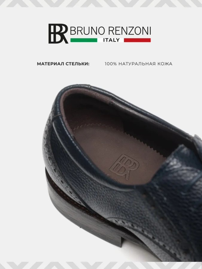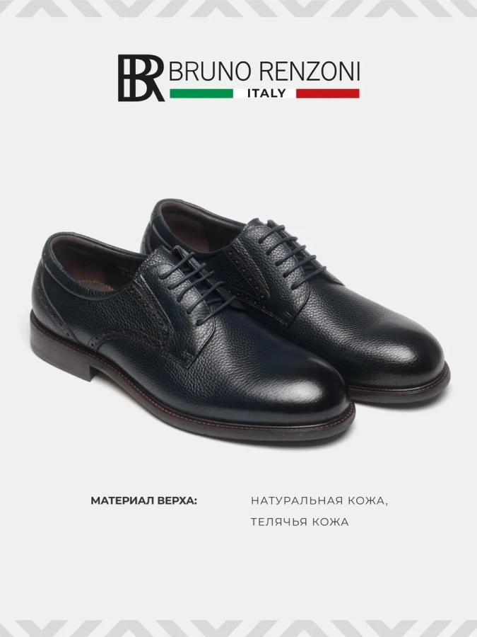Люксовая мужская евро обувь Bruno Renzoni выполнена из цельной натуральной телячьей кожи высшего сорта. Такая качественная кожа имеет лучшую прочность и долговечность. И именно это ищут ценители безупречной обуви. Модельный ряд разработан опытными дизайнерами. Каждая пара выглядит фантастически солидно! Обувные колодки адаптированы специалистами подологами под форму мужской стопы. Это обеспечивает абсолютное удобство при ходьбе.