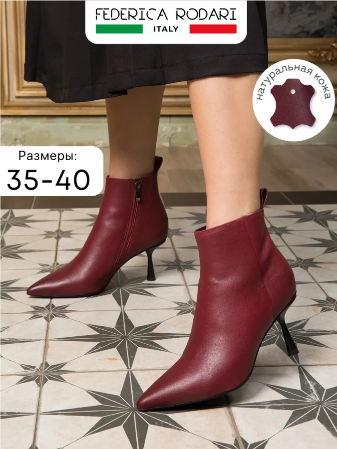 Обретите неповторимый стиль и комфорт с женскими ботильонами FEDERICA RODARI из Италии. Бордовые ботильоны из коллекции Осень-Зима 2023-2024 станут незаменимым акцентом в стильных осенних нарядах.