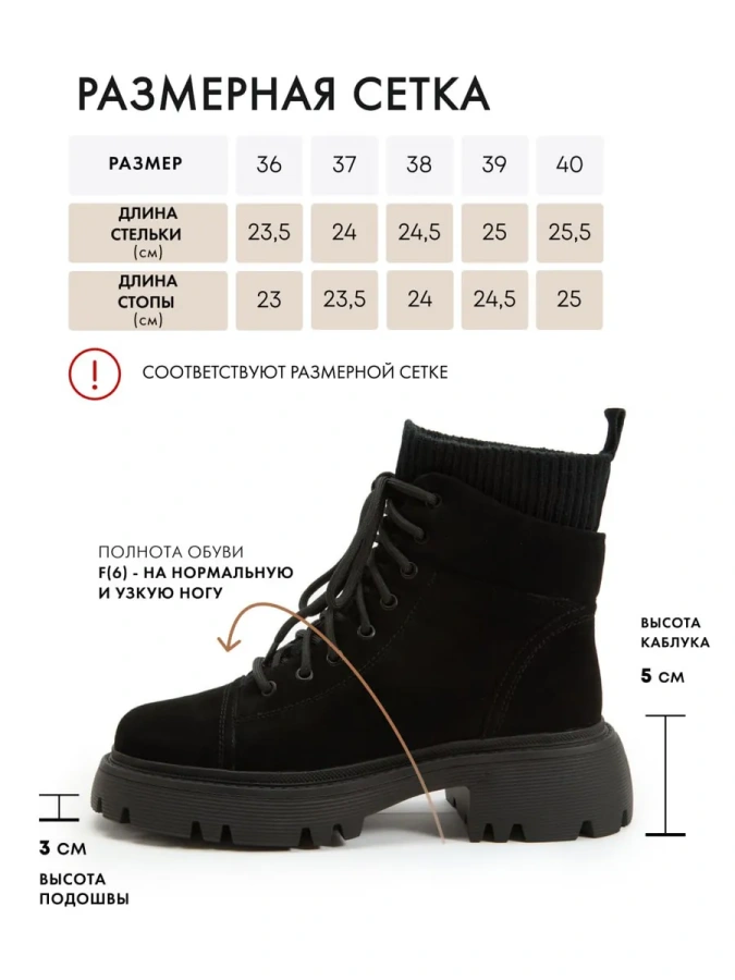 Длина стельки: 36р - 23,5см/ 37р - 24,0см/ 38р - 24,5см/ 39р - 25,0см/ 40р - 25,5 см.