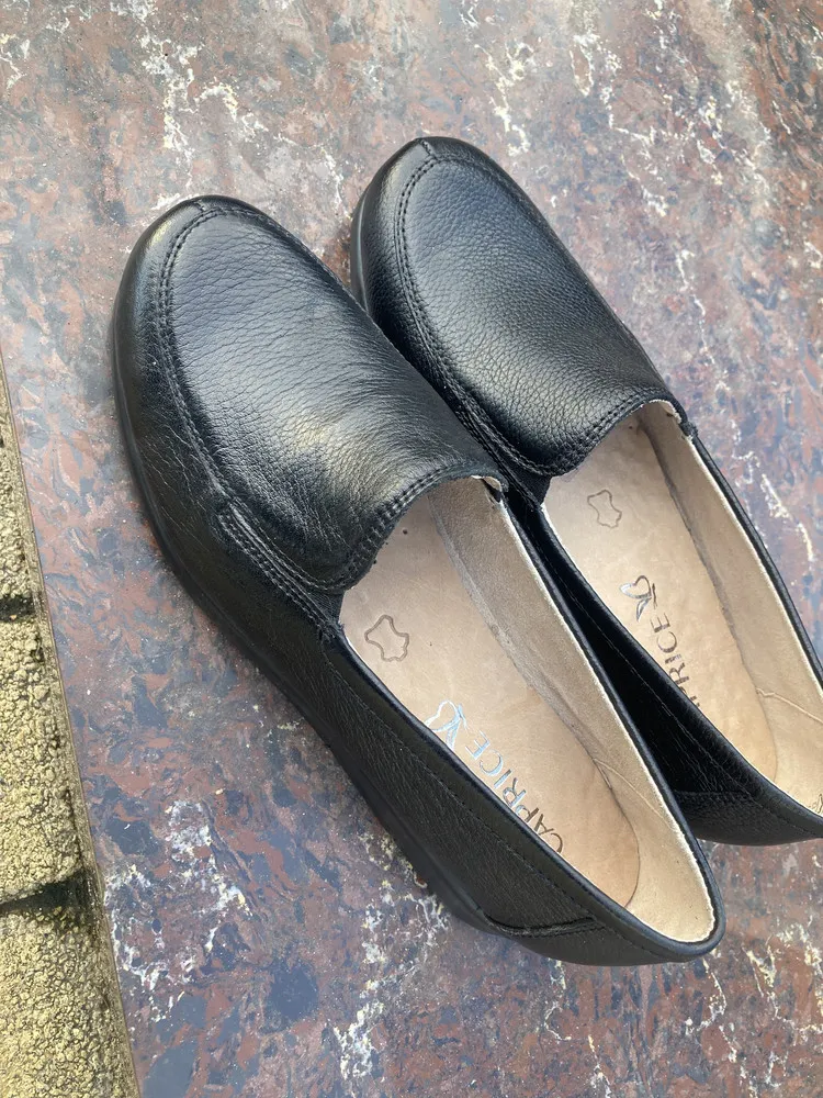 Модель изготовлена из 100% натуральной кожи, что обеспечивает её долговечность и изысканный внешний вид. Чёрный цвет туфлей CAPRICE станет отличным дополнением к вашему гардеробу, легко сочетаясь с различными образами в стиле casual. Удобная танкетка высотой 3 см и небольшая высота подошвы в 1 см обеспечивают комфорт при ходьбе. Эластичная вставка гарантирует лёгкость надевания и удобство в носке.