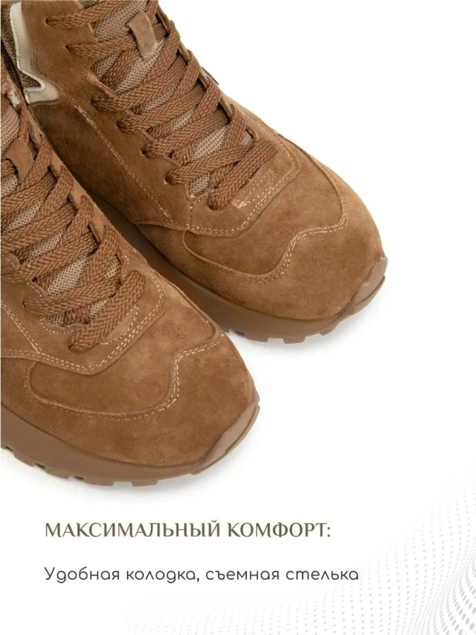 Натуральная кожа (замша) высокого качества, из которой изготовлен верх кроссовок, обеспечивает комфорт и долговечность. Мягкая байковая подкладка и стелька создают уют и тепло, необходимые в прохладное время года.