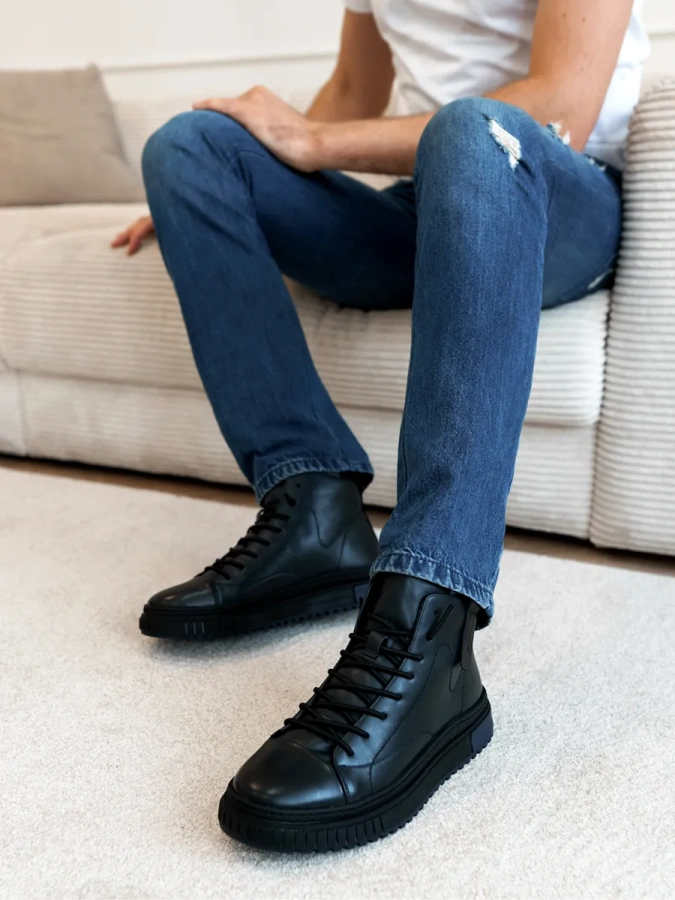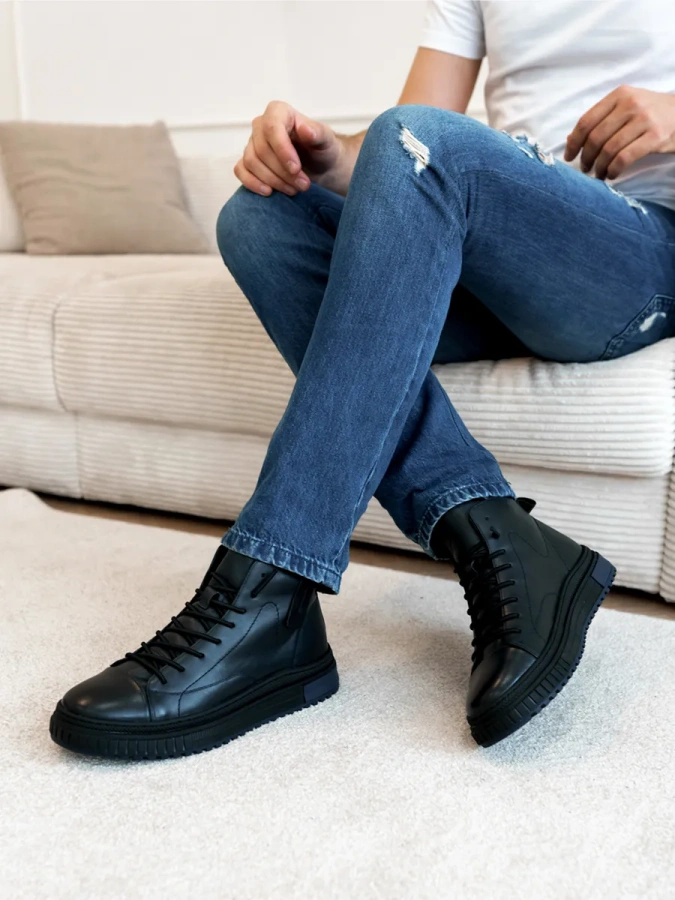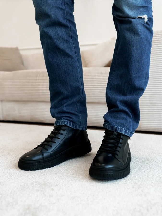 Верх ботинок изготовлен из высококачественной 100% натуральной кожи, что обеспечивает долгий срок службы и уникальный внешний вид. Мягкая байка используется как подкладка и стелька, гарантируя максимальный комфорт и тепло в холодные дни.