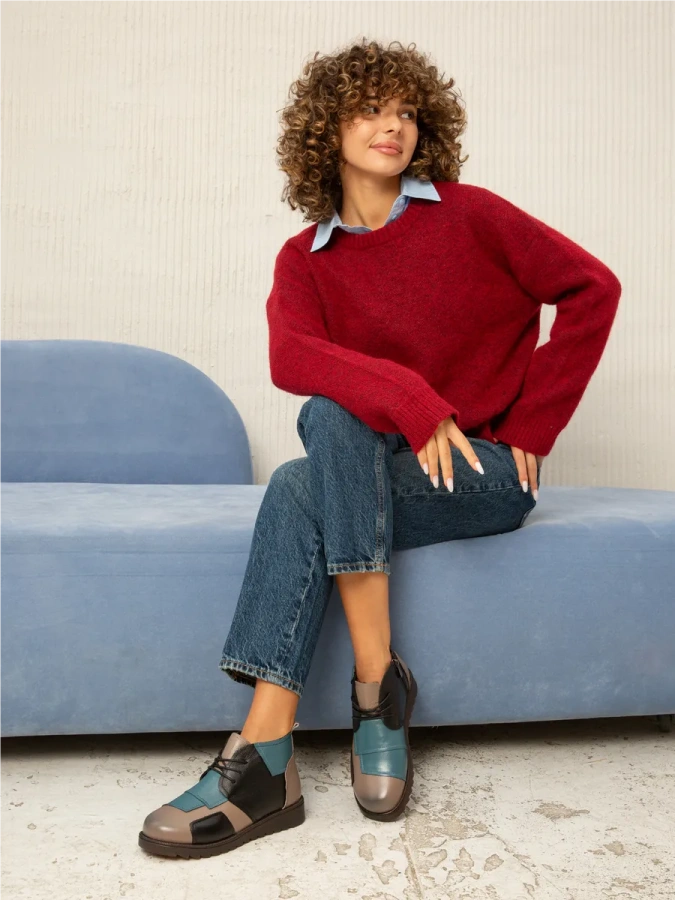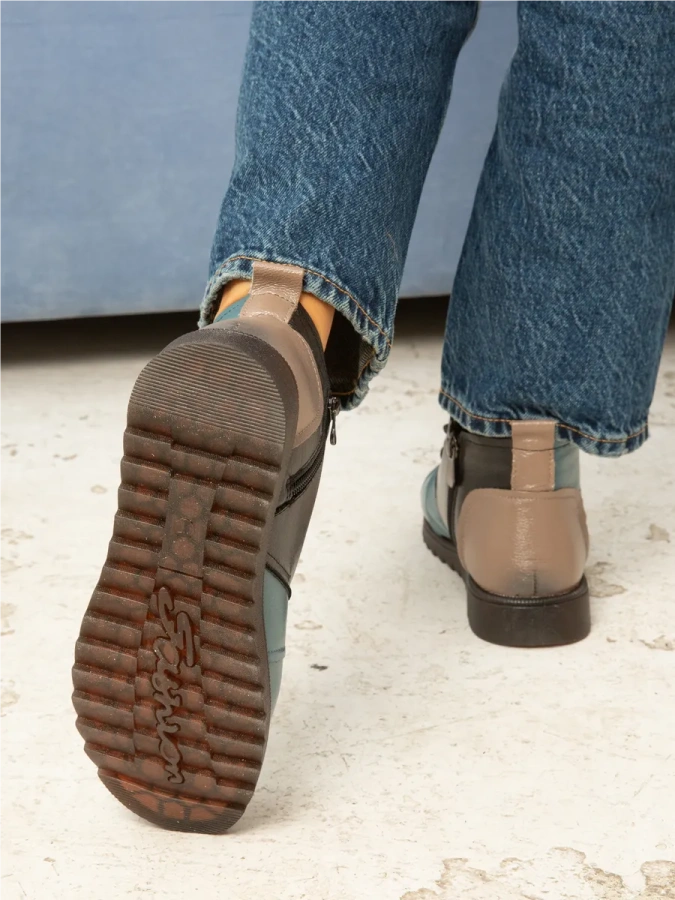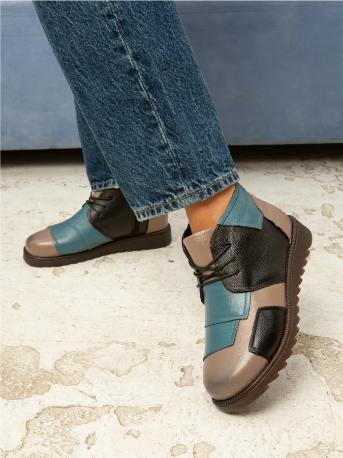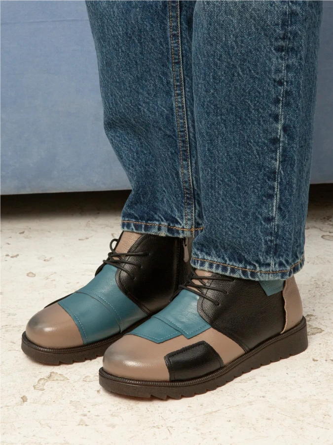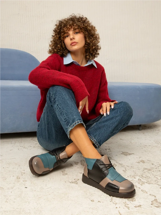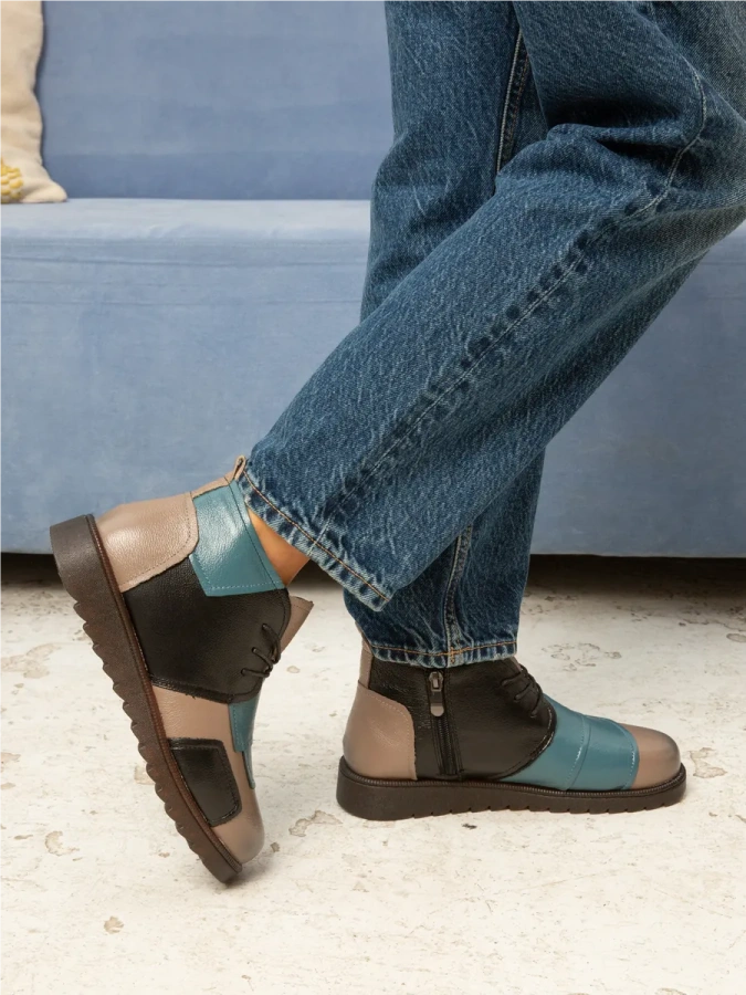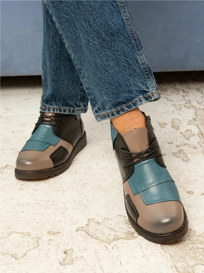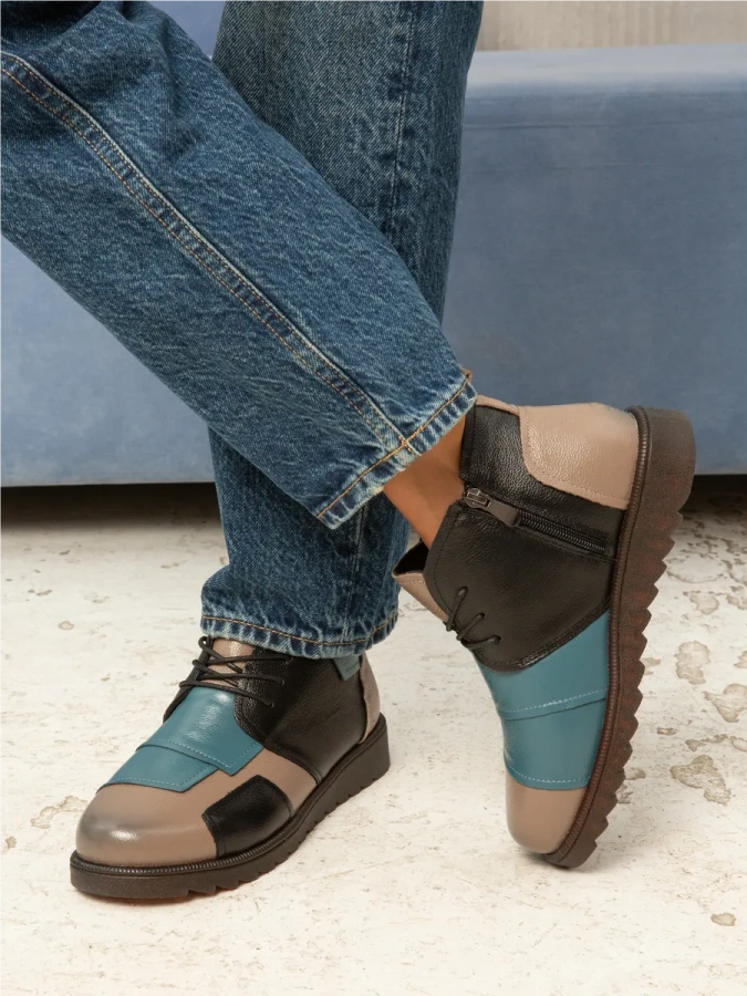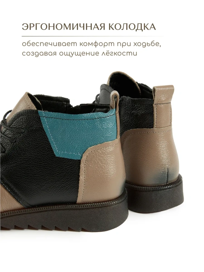 Модель изготовлена из 100% натуральной кожи, что обеспечивает её долговечность и привлекательный внешний вид. Высота подошвы в 1,5 см и аккуратный каблук в 3 см делают модель удобной и стильной. Шнуровка и молния обеспечивают надёжную фиксацию и комфорт при ходьбе. Подкладка и стелька из байки сохраняют тепло в прохладную погоду.