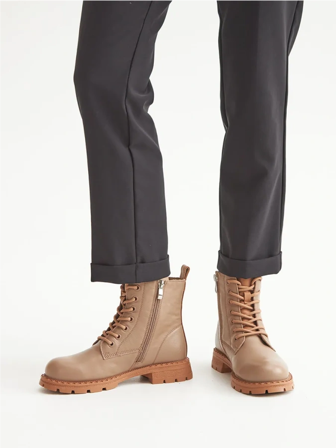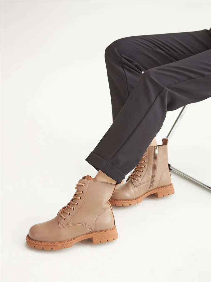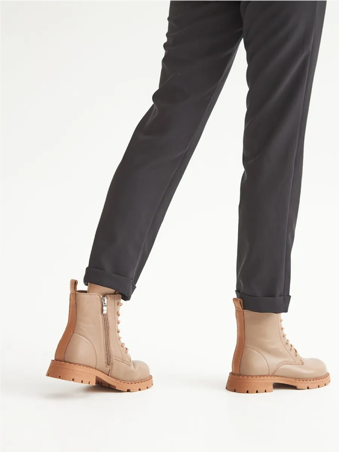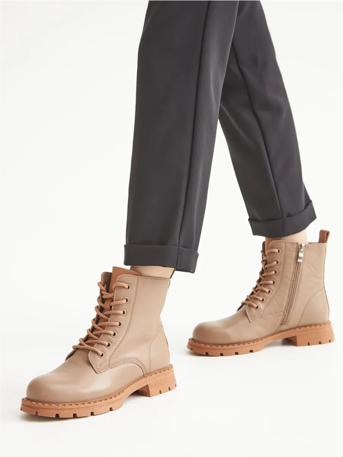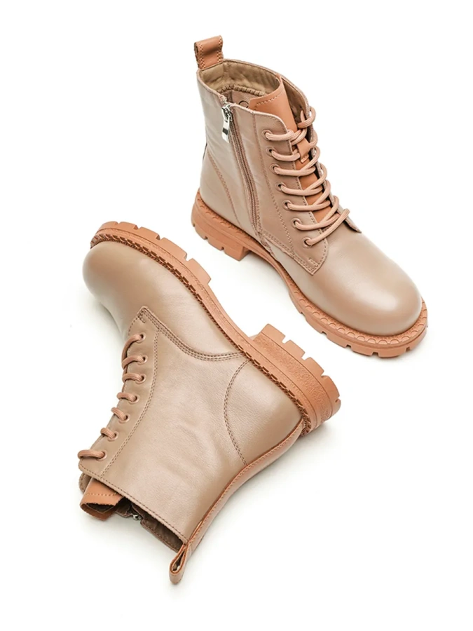 Берцы Donna Daniella — это идеальный выбор для любителей удобной и стильной обуви. Бежевый цвет придаёт им универсальность, позволяя легко сочетать их с различными элементами гардероба. Натуральная кожа высокого качества обеспечивает долговечность и комфорт при носке. Байка внутри обуви сохраняет тепло и создаёт дополнительный уют. Резиновая подошва с высотой платформы 1,7 см и каблуком 3,5 см обеспечивает не только стильный внешний вид, но и отличное сцепление с поверхностью. Шнуровка в сочетании с молнией обеспечивает надёжную фиксацию стопы. Эти берцы станут отличным дополнением к вашему образу в стиле casual и подойдут для осеннего и зимнего сезонов.
