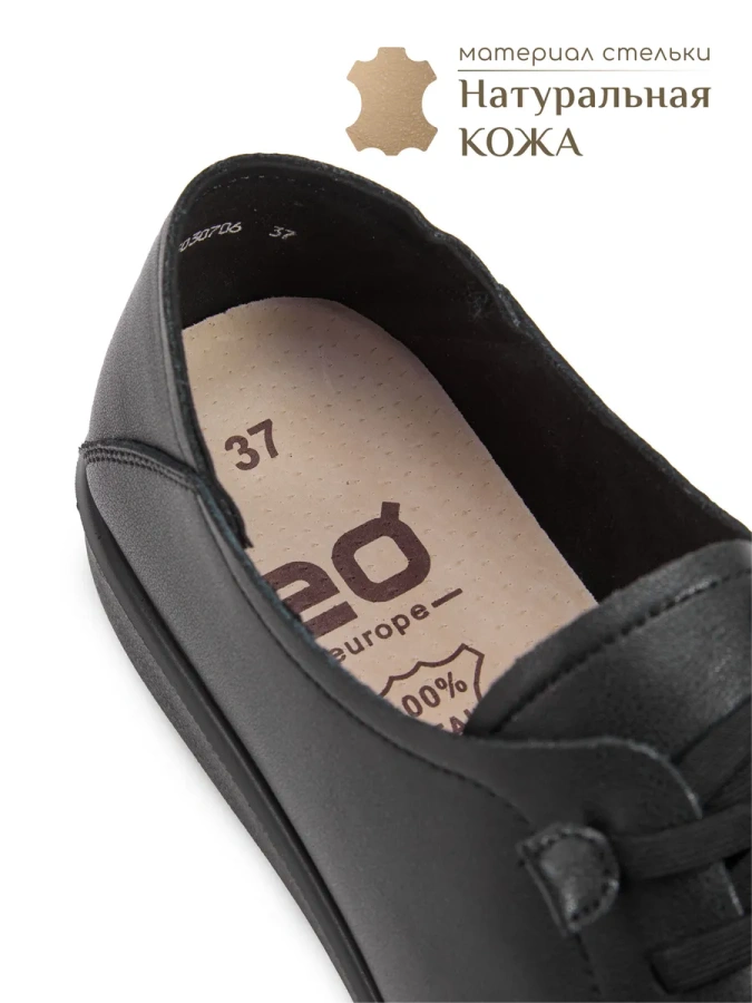 Чёрный цвет и высококачественная натуральная кожа делают эти туфли не только стильными, но и долговечными. Удобная подошва из полиуретана и натуральная кожа стельки обеспечивают комфорт при ходьбе. Высота подошвы — 1,5 см, высота каблука — 2,5 см. Подкладка из текстиля добавляет лёгкости и уюта. Эти туфли станут отличным дополнением к вашему образу в сезоне осень-зима 2026.
