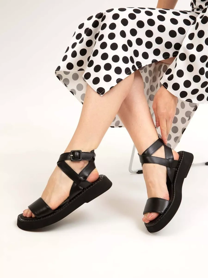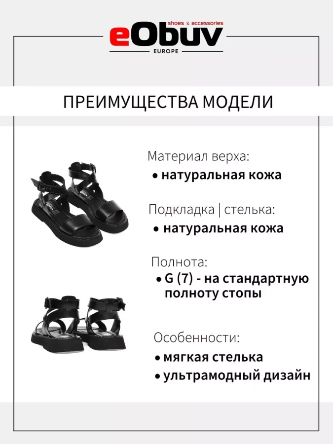 Женские сандалии из натуральной кожи от бренда eObuv. Длина стельки в см.: 36 - 23,5/ 37 - 24/ 38 - 24,5/ 39 - 25,5/ 40 - 26. Высота подошвы в пяточной части - 3 см., высота подошвы в носочной части - 2 см. Подкладка и стелька выполнены из натуральной кожи, что повышает прочность изделия и придает максимальный комфорт ноге в летний период.Подошва на платформе обладает износостойкостью и хорошим сцеплением с поверхностью, что делает сандалии долговечными и практичными. Удобная колодка адаптирована под женскую стопу и длительную носку, а ремешок на щиколотке обеспечивает комфортную фиксацию на ноге. Подходят на стандартную полноту стопы и небольшой +/-.