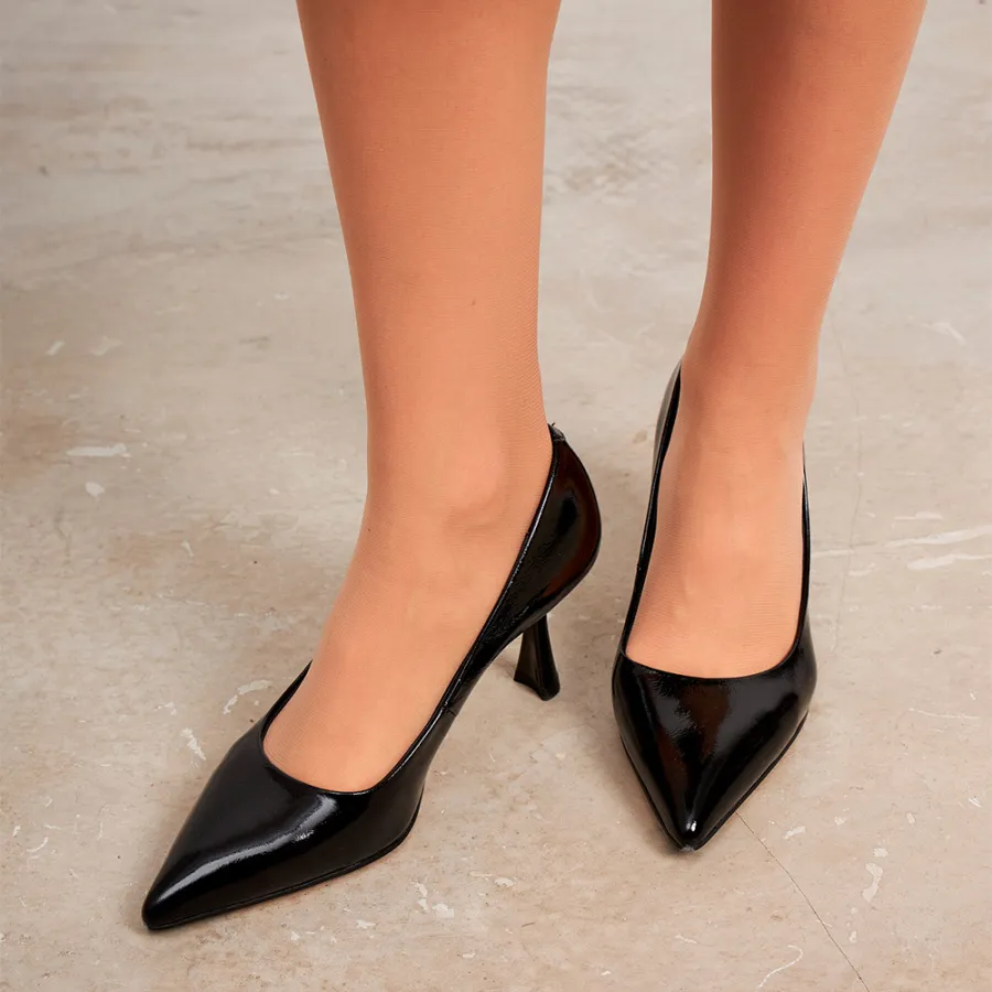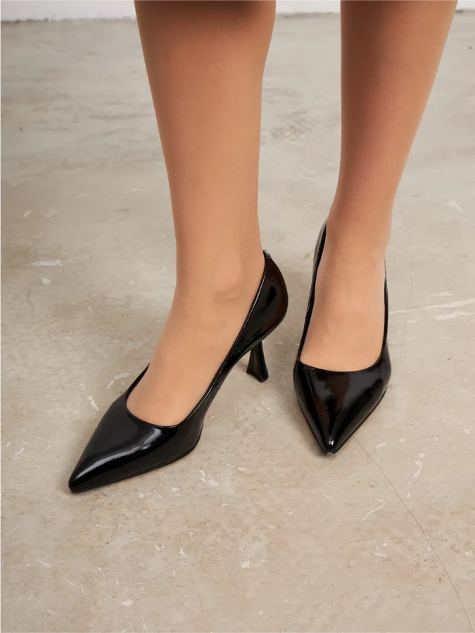 Чёрный цвет делает их универсальными для любого образа, а лаковая натуральная кожа придаёт изысканность и блеск.