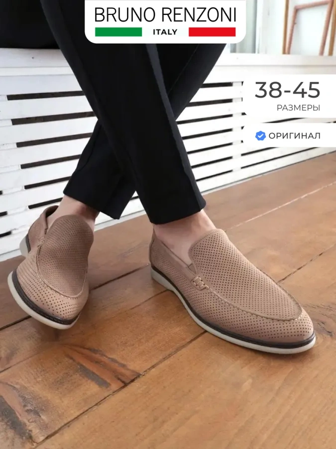 Мужские летние туфли Лоферы из натурального нубука от итальянского бренда Bruno Renzoni. Длина стельки в см.: 38 - 26/ 39 - 26,5/ 40 - 27/ 41 - 27,5/ 42 - 28/ 43 - 28,5/ 44 - 29/ 45 - 29,5. Высота каблука - 2 см., высота подошвы в носочной части - 1 см., высота задника - 7 см. Подкладка и несъемная стелька также выполнены из натуральной кожи, что повышает прочность изделия и придает максимальный комфорт. Сквозная перфорация обеспечивает естественную вентиляцию стопы, идеально для жаркой погоды. Облегченная подошва обладает износостойкостью и хорошим сцеплением с поверхностью. Удобная колодка адаптирована под мужскую стопу и длительную носку. Подходят на стандартную полноту стопы и небольшой +/-.