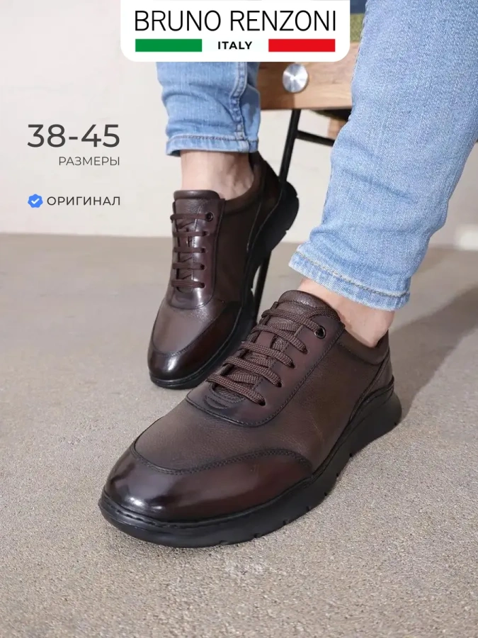 Классические мужские кроссовки из натуральной кожи от итальянского бренда Bruno Renzoni. Длина стельки в см.: 38 - 25,5/ 39 - 26/ 40 - 26,5/ 41 - 27/ 42 - 27,5/ 43 - 28/ 44 - 28,5/ 45 - 29. Высота подошвы в пяточной части - 3 см., высота подошвы в носочной части - 1,5 см., высота задника - 7 см. Подкладка и съемная стелька выполнены из натуральной кожи, что повышает прочность изделия и придает максимальный комфорт. Идеально подойдут на весну и осень. Дизайнерское решение в виде сочетания зернистой и гладкой кожи в разных оттенках - изюминка модели. Прочная шнуровка обеспечивает комфортную фиксацию на ноге. Спортивная подошва обладает износостойкостью и хорошим сцеплением с поверхностью. Удобная колодка адаптирована под мужскую стопу и длительную носку. Подходят на стандартную полноту стопы и небольшой +/-.