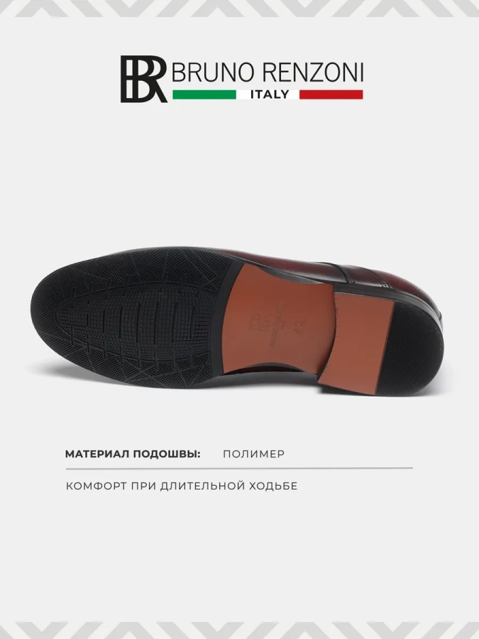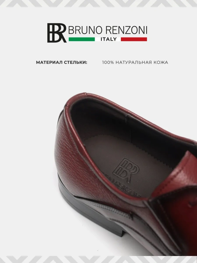 Мужские туфли BRUNO RENZONI бордовые, артикул YS260AB-H28C-NP