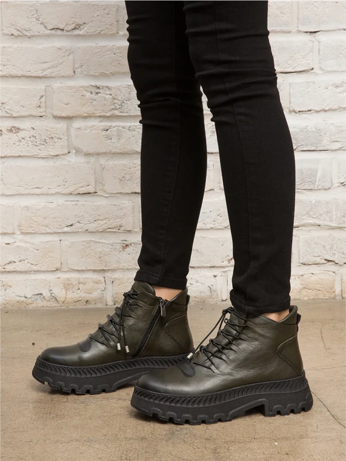 Погрузитесь в атмосферу уюта и стиля с женскими ботинками eObuv, представленными в осенне-зимней коллекции 2023-2024. Ботинки, выполненные из 100% натуральной кожи в теплом хаки, станут неотъемлемой частью Вашего гардероба на осень. Их casual стиль подчеркнет непринужденность, а материалы высшего качества обеспечат комфорт на протяжении всего дня.
