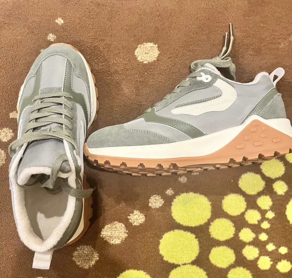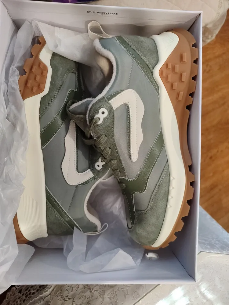 Хаки — цвет, который гармонично впишется в любой образ. Материал верха из натуральной замши и текстиля обеспечивает комфорт и долговечность, а ворсистая подкладка добавляет уюта. Эти кроссовки станут незаменимой частью вашего гардероба и подойдут для любого сезона.
