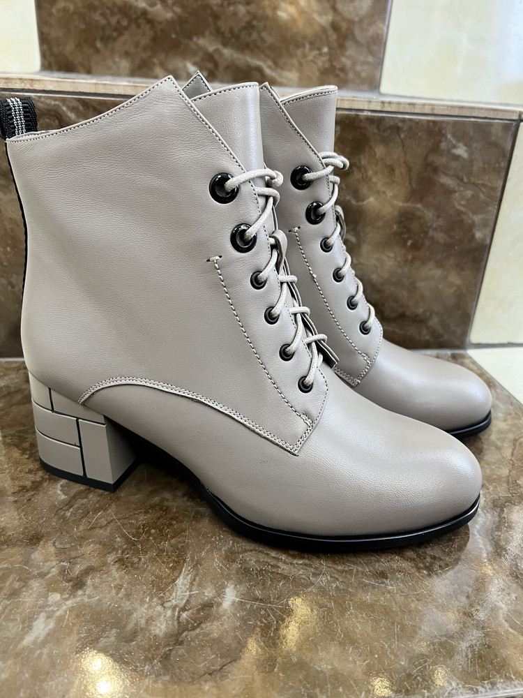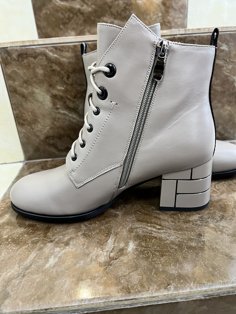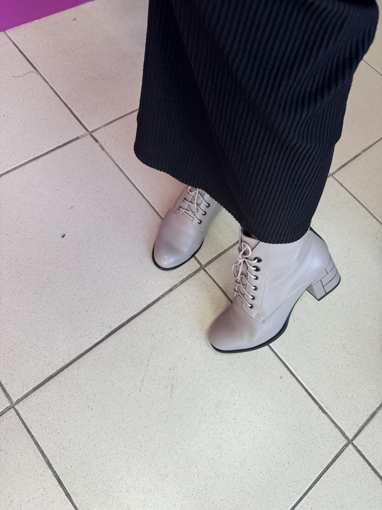 Женские демисезонные ботильоны из натуральной кожи от итальянского бренда Federica Rodari. Длина стельки в см.: 36 - 23,5/ 37 - 24/ 38 - 24,5/ 39 - 25/ 40 - 26/ 41 - 26,5. Подкладка и несъемная стелька утеплены байкой, что повышает теплоизоляцию и придает максимальный комфорт. Идеально подойдут на осень/весну и на не очень холодную (европейскую) зиму. Лаконичное исполнение идеально дополнит гардероб современной леди. Сочетание молнии и шнуровки облегчает обувание и способствует комфортной посадке. Устойчивый каблук и удобная колодка адаптированы под женскую стопу и длительную носку. Подходят на стандартную полноту G(7) и небольшой +/-.