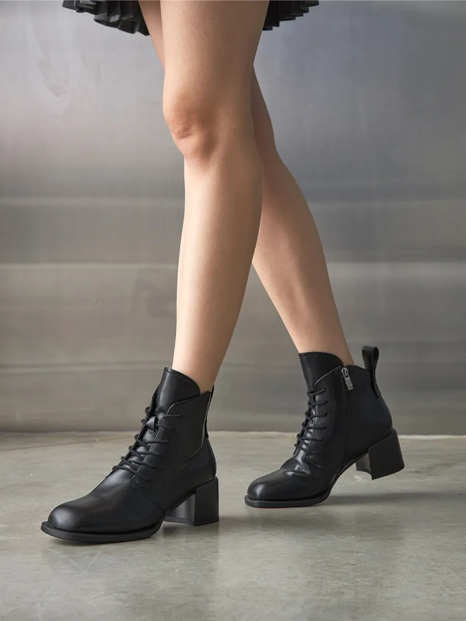 Эти закрытые туфли на низком широком каблуке идеально подходят для повседневной носки. Так, например, для более элегантных случаев можно сделать ставку на ботильоны с квадратным носом. Если Вы желаете чувствовать себя максимально комфортно, выбирайте ботинки на трапециевидном каблуке, которые отличаются удобством и элегантностью.
