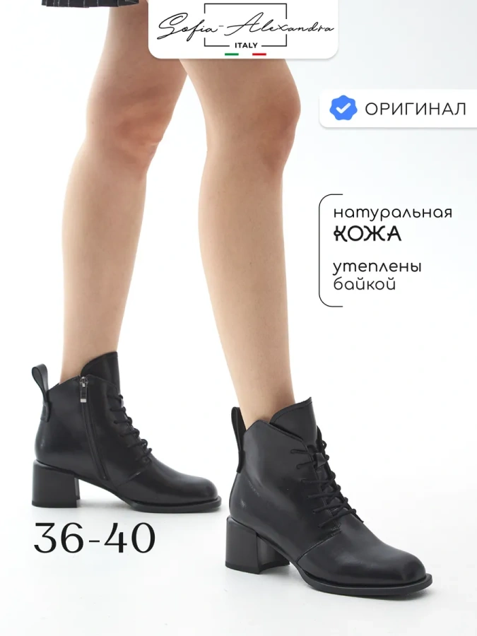 Женские кожаные демисезонные ботильоны на среднем каблуке от итальянского бренда SOFIA-ALEXANDRA.