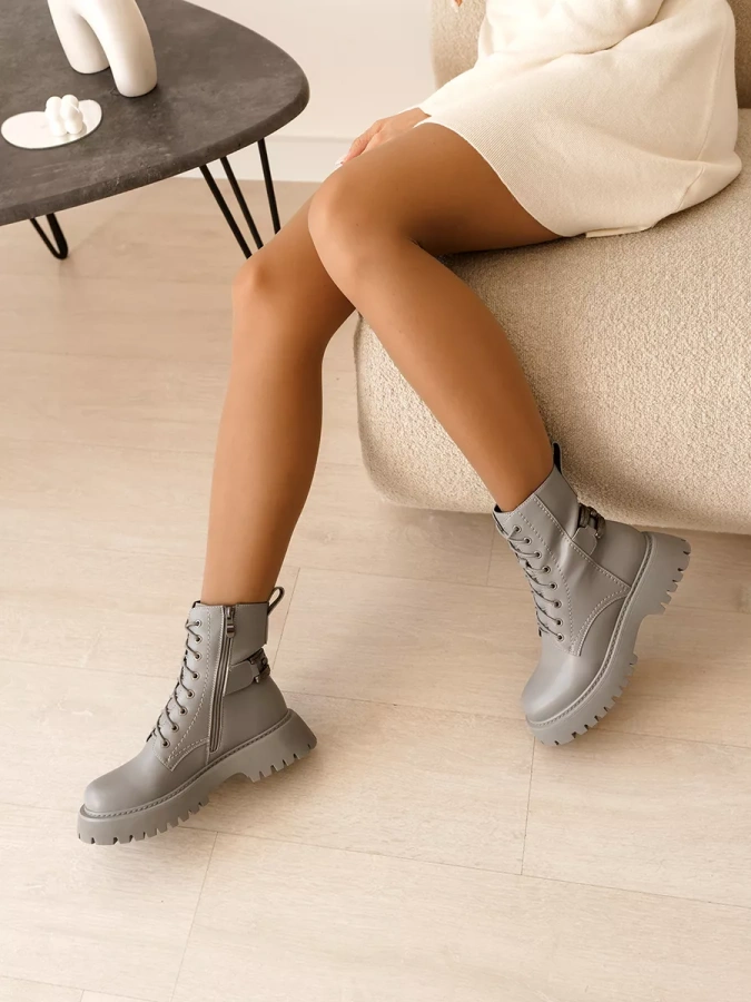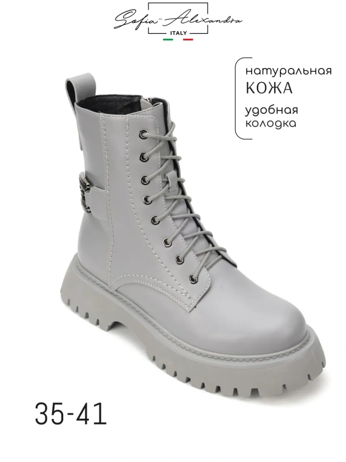 Представляем элегантные серые берцы Sofia-Alexandra для современных женщин. Эти берцы из коллекции Осень-Зима 2023-2024 сочетают в себе стиль, комфорт и итальянское качество.