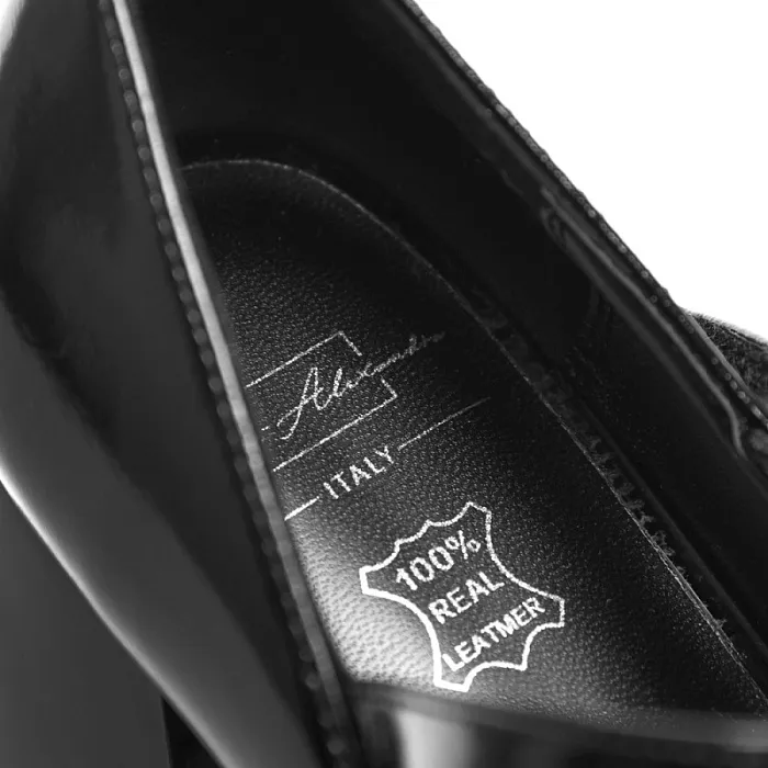 Верх изготовлен из 100% натуральной лаковой кожи, что придает обуви особый шарм и отличается долговечностью.