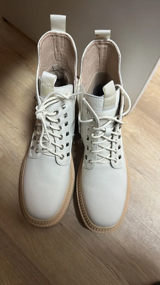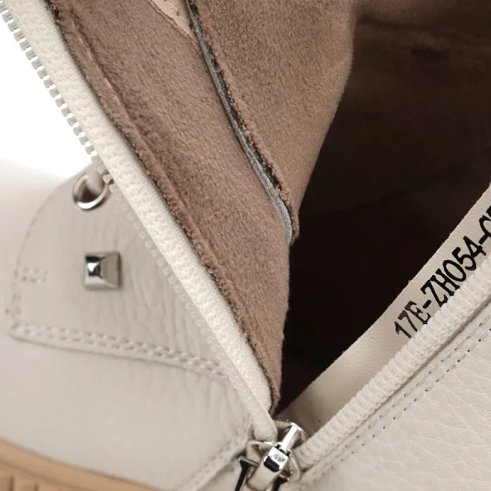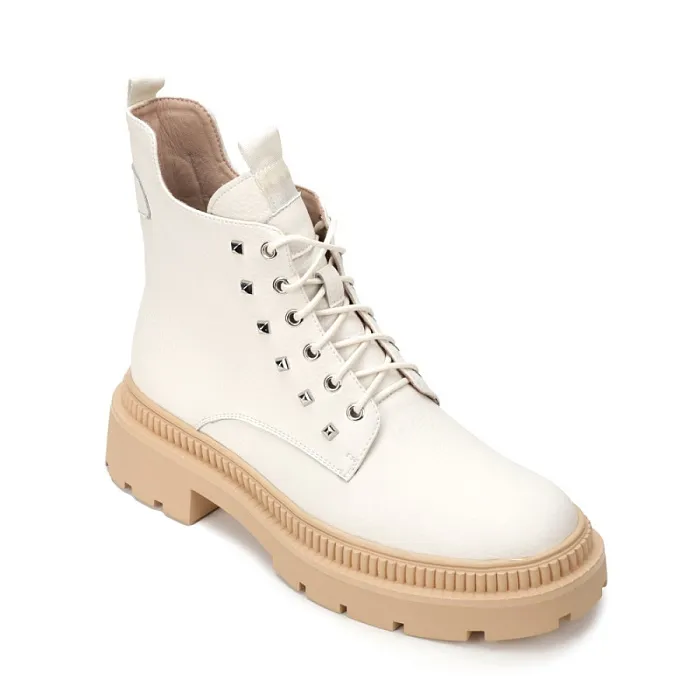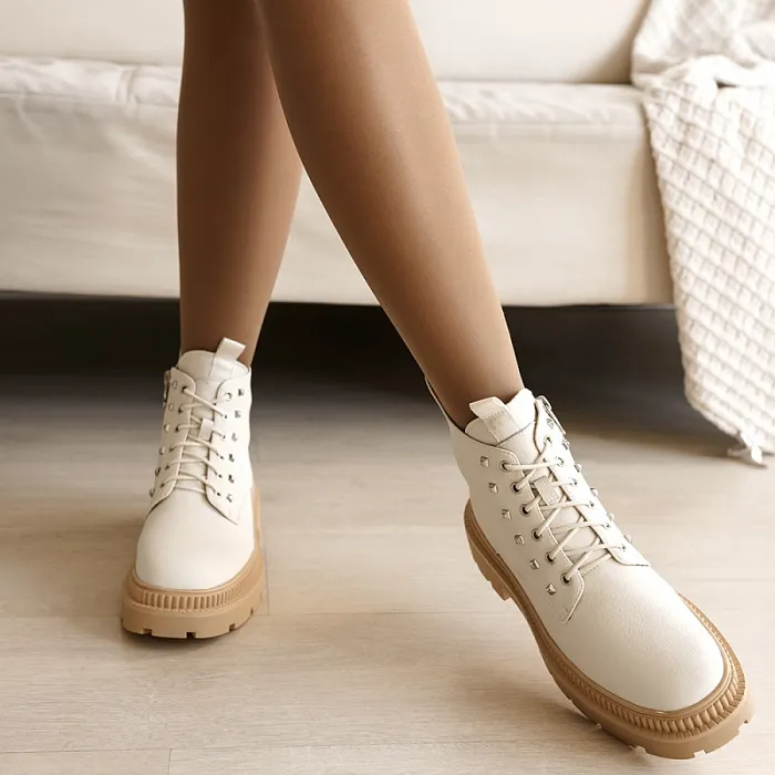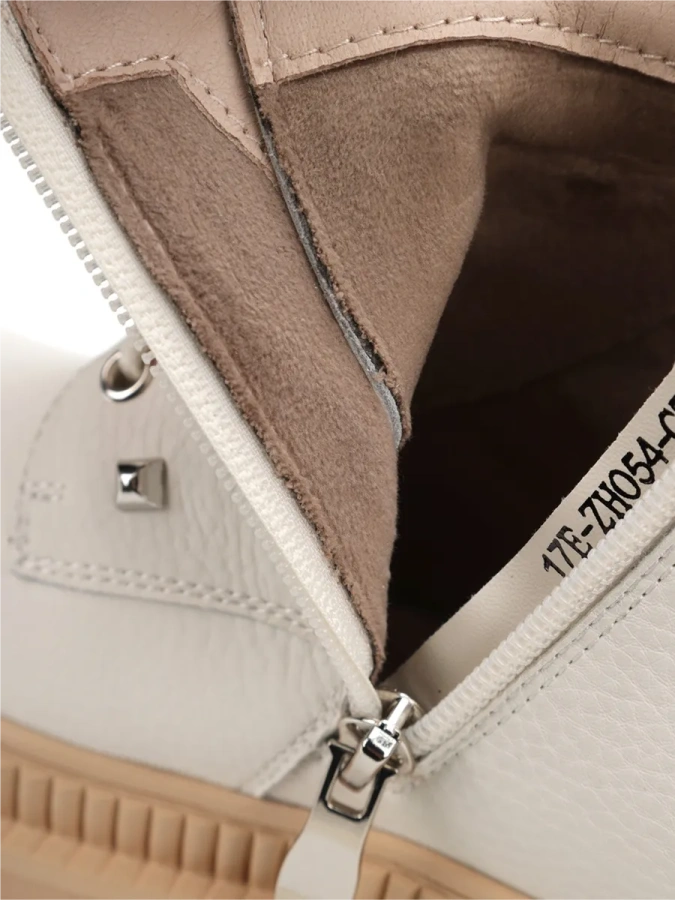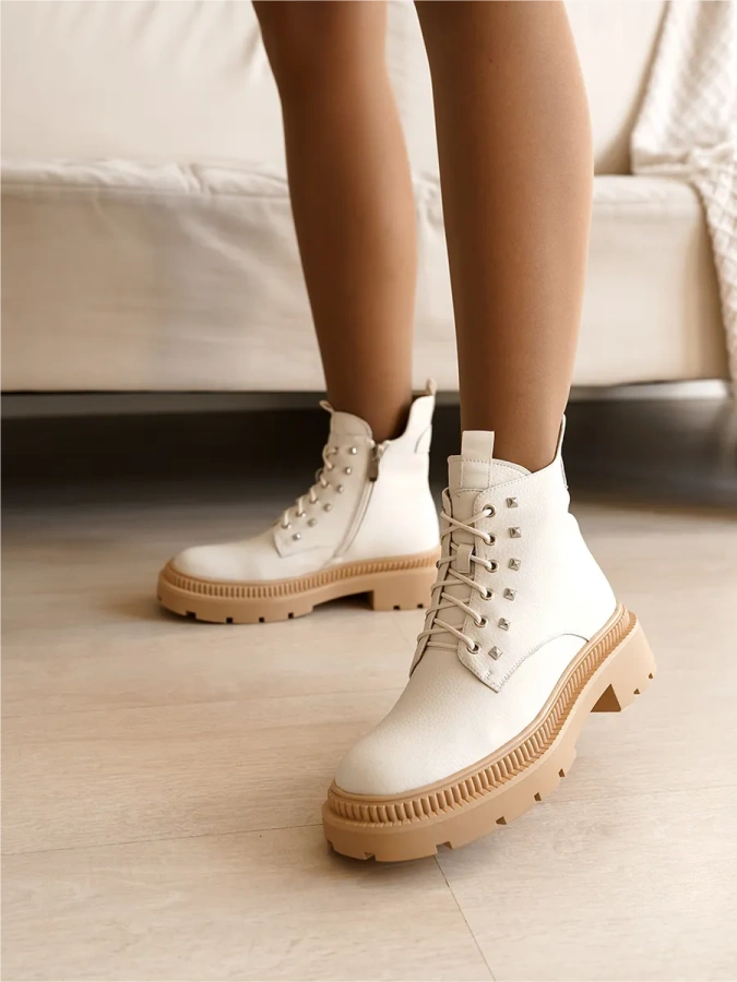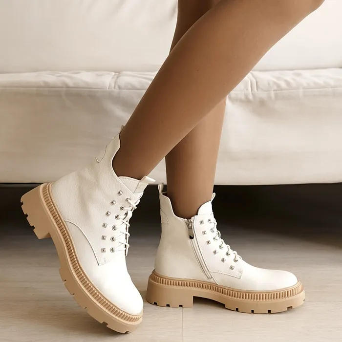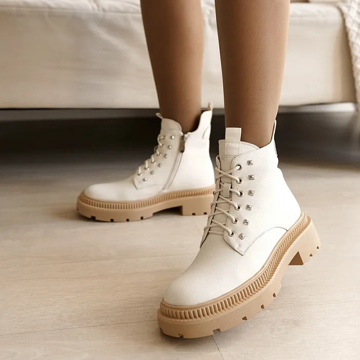 Ботинки снабжены шнуровкой и молнией, что обеспечивает удобство при надевании и снятии. Белый цвет придает им свежий и модный вид.