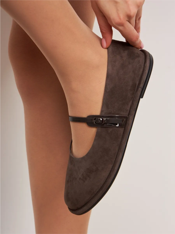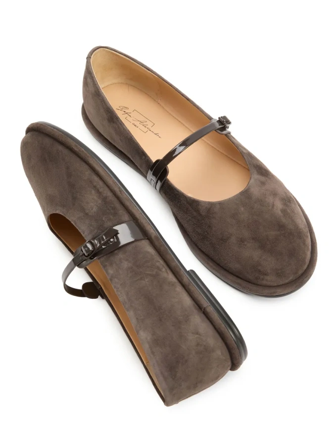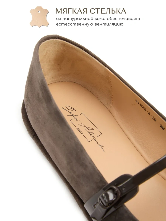 Модель изготовлена из 100% натуральной кожи (замши), что обеспечивает комфорт и долговечность. Серый цвет делает туфли универсальными для создания повседневных образов. Низкий устойчивый каблук и удобная подошва высотой 1 см делают эти туфли идеальными для осеннего сезона. Тип застёжки — пряжка с ремешком, что обеспечивает надёжную фиксацию на ноге. В этих туфлях вы будете чувствовать себя уверенно и стильно.