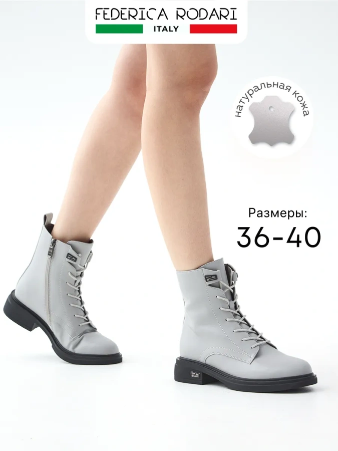 Высота каблука - 4 см., высота подошвы в носочной части - 2 см., высота голенища - 13 см., Полнота G (7) (стандарт).Ботинки от бренда FEDERICA RODARI — это идеальный выбор для любителей стильной и удобной обуви. Изготовленные в Италии, они отличаются высоким качеством и безупречным дизайном. Серый цвет ботинок делает их универсальными и легко сочетаемыми с различными элементами гардероба. Натуральная кожа обеспечивает долговечность и устойчивость к износу, а подкладка и стелька из байки гарантируют комфорт при носке. Удобная шнуровка в сочетании с молнией обеспечивает лёгкость при обувании и надёжную фиксацию стопы. Высота подошвы 2 см и каблука 4 см (кирпичный каблук) делают эти ботинки не только стильными, но и удобными для повседневной носки. Подчеркните свой образ с ботинками от FEDERICA RODARI и наслаждайтесь комфортом в любую погоду!