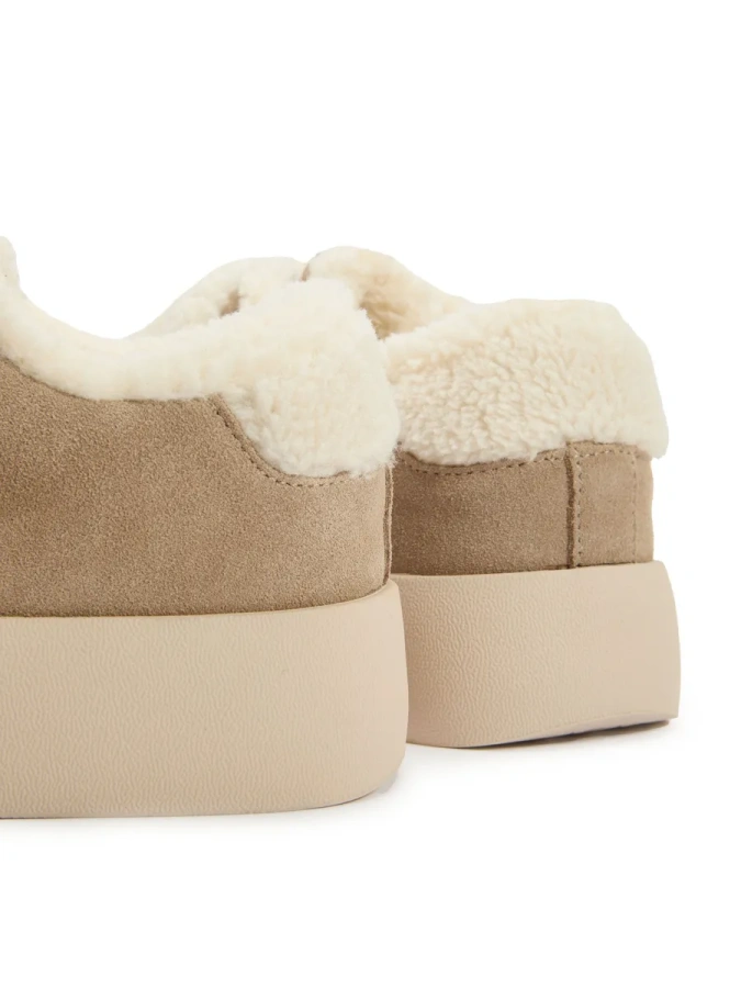 Бежевый цвет и материал верха из 100% натуральной кожи (замши) придают обуви изысканность и элегантность. Тёплая шерстяная подкладка и стелька обеспечивают комфорт и сохранение тепла в холодное время года. Резиновая подошва гарантирует долговечность и устойчивость. Эти кеды станут отличным дополнением к вашему зимнему гардеробу, сочетая в себе стиль и практичность.