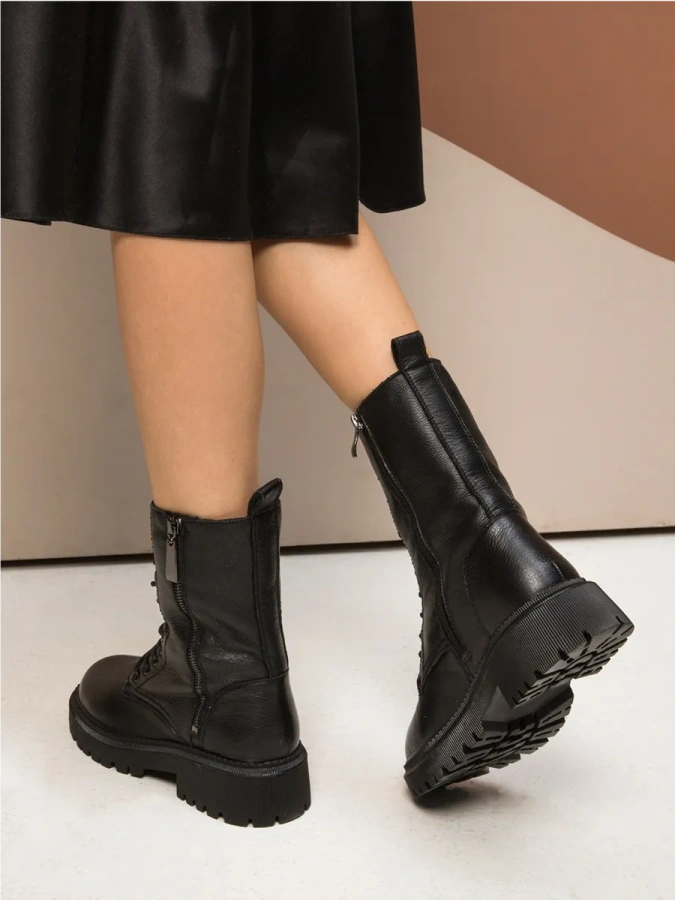 Привнесите итальянскую элегантность и комфорт в Ваш зимний гардероб с берцами от изысканного бренда Donna Daniella. Черные берцы из коллекции Осень-Зима 2023-2024 представляют собой смелое сочетание стиля Grange и функциональности для зимних приключений.