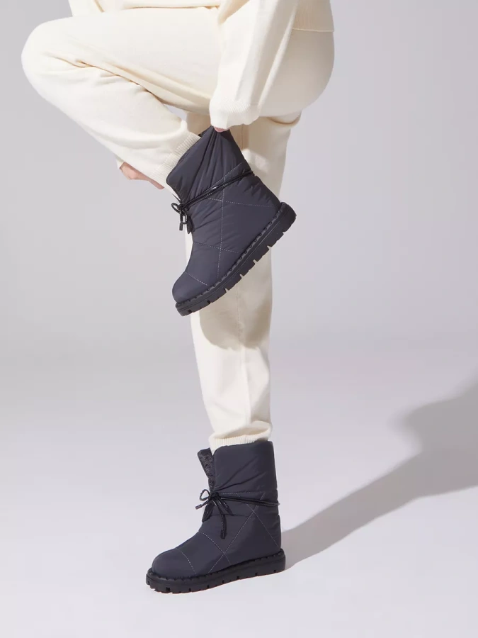 Без каблука и застежки, дутики придают непринужденный шарм Вашему образу, отражая стиль футуризм. Они станут идеальным дополнением к зимнему гардеробу, подчеркивая индивидуальность и современность.